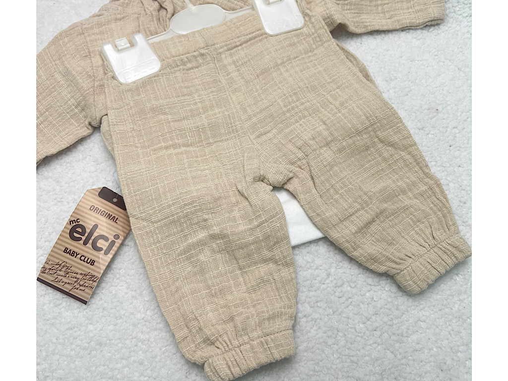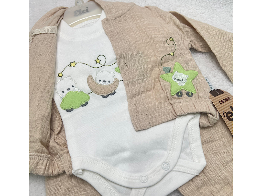 ست سه تکه نوزادی پسرانه کتان نخ دارای گلدوزی ELCI