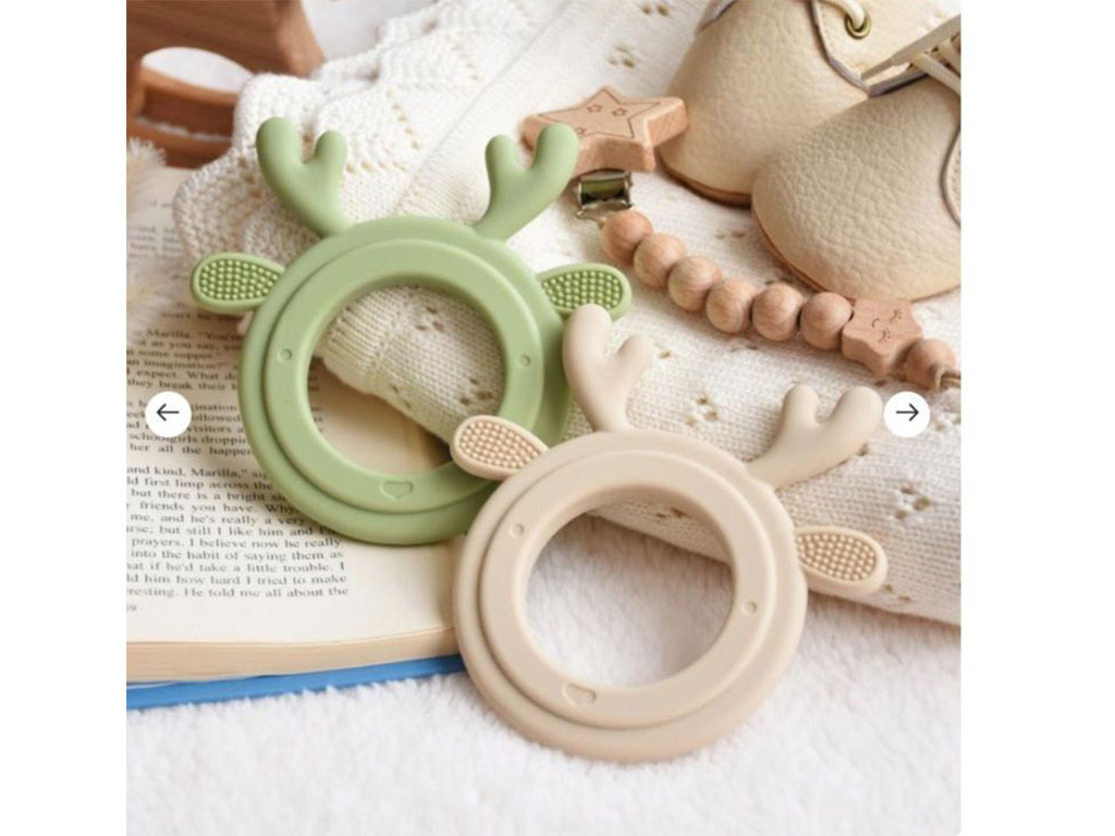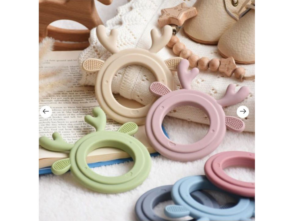 دندانگیر نوزادی دخترانه و پسرانه دارای سه طرح گوزن با ترکیب رنگ های شاد و جذاب که مناسب استفاده دلبندان 3 الی 18 ماه می باشد.