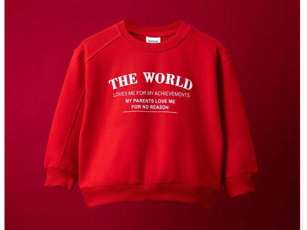بلوز آستین بلند دورس قرمز رنگ طرح The world بشیر Bashir