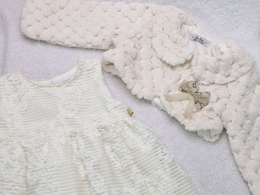 کت و سارافون گیپور نوزادی دخترانه رنگ کرم نیوبرن