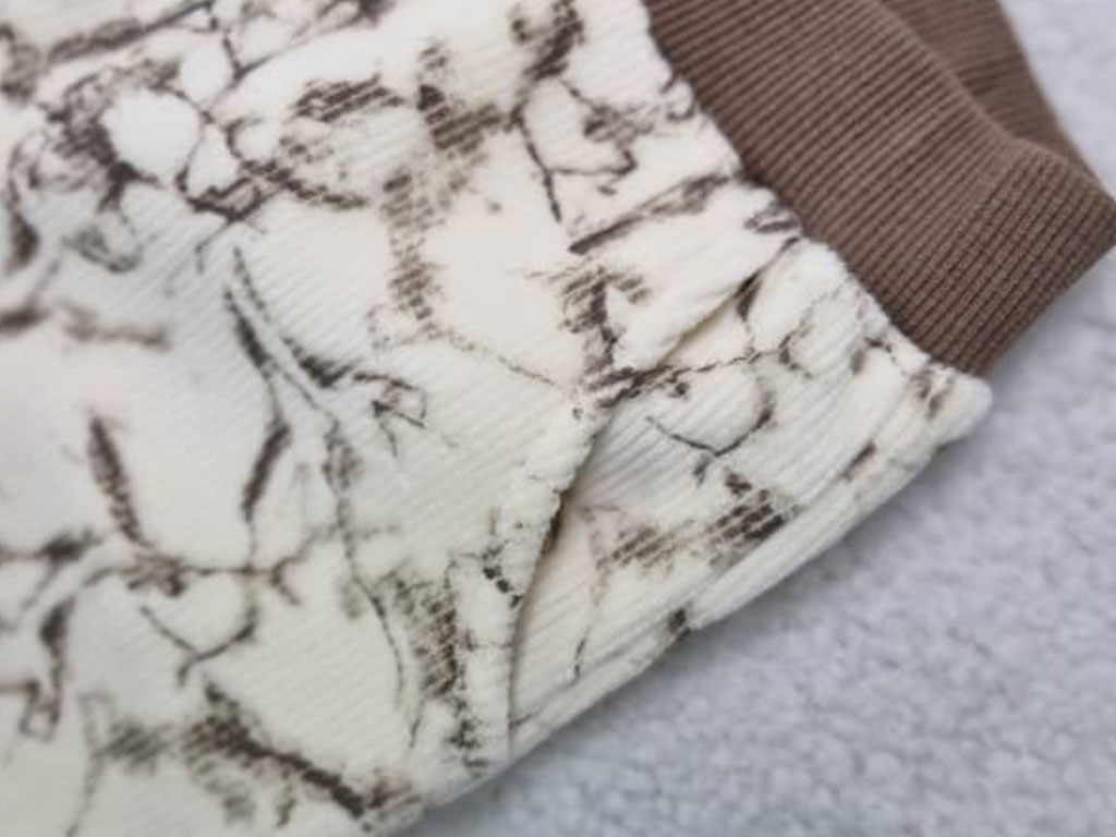 ست بلوز و شلوار مخمل شیری طرح ابرو بادی نسکافه ای نیوبرن