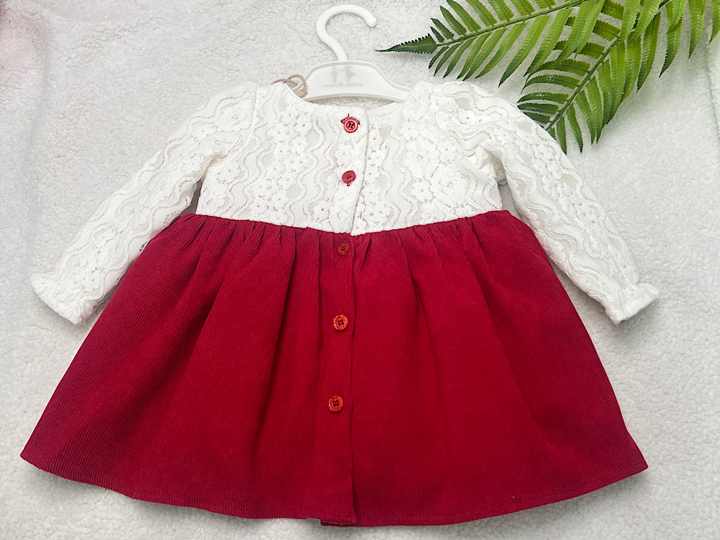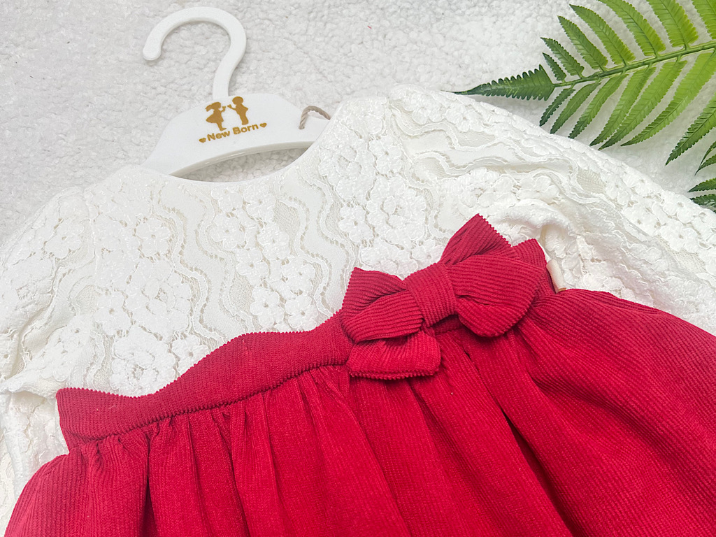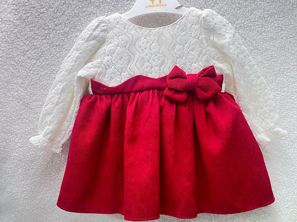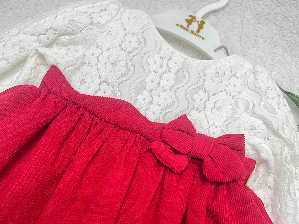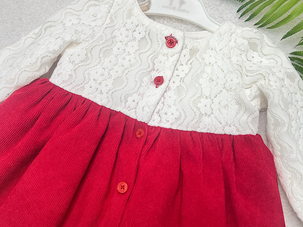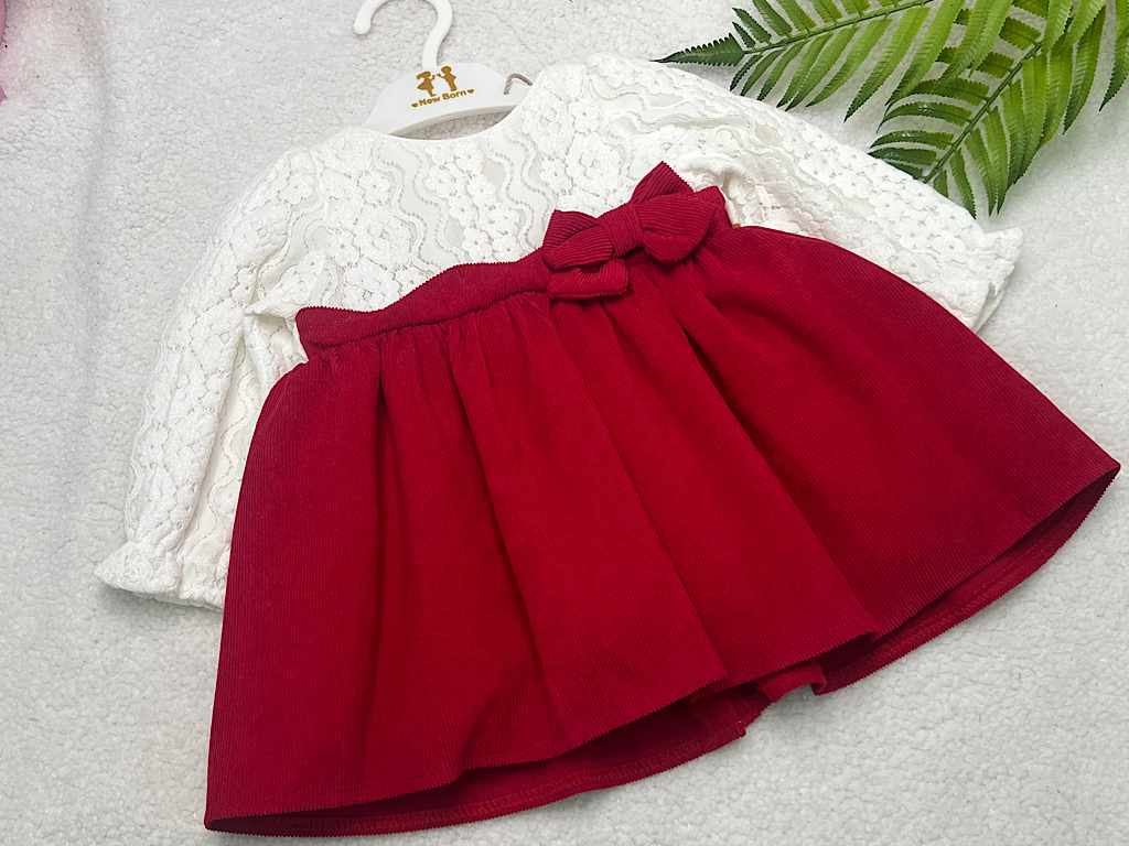 پیراهن دخترانه گیپور و مخمل کبریتی قرمز و سفید نیوبرن