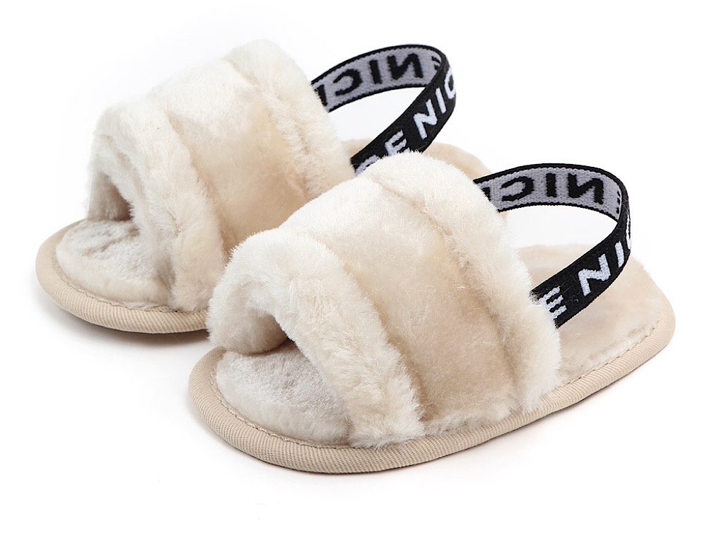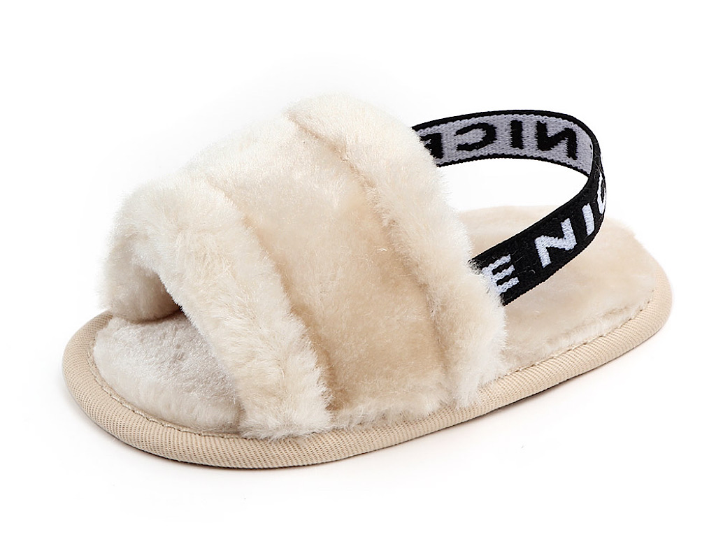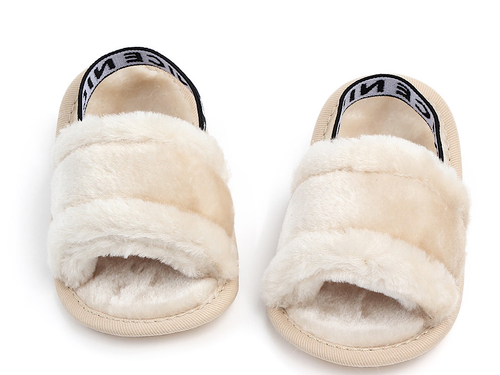 پاپوش استپ دار نوزادی طرح صندل خزدار کرم رنگ
