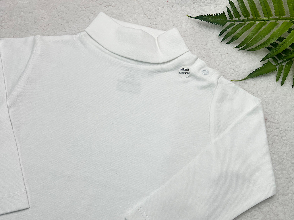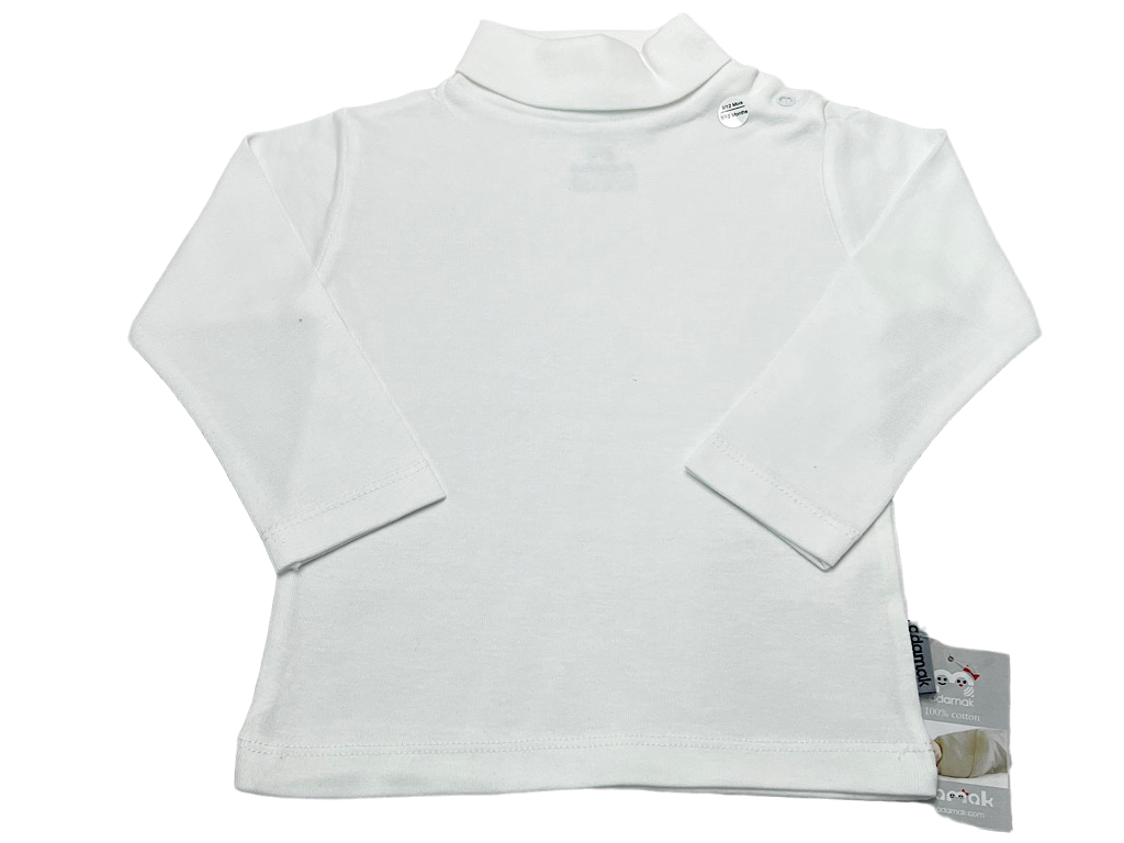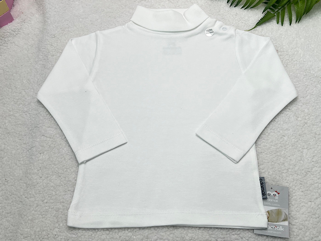 بلوز نوزادی و کودک یقه اسکی سفید رنگ آدمک Adamak