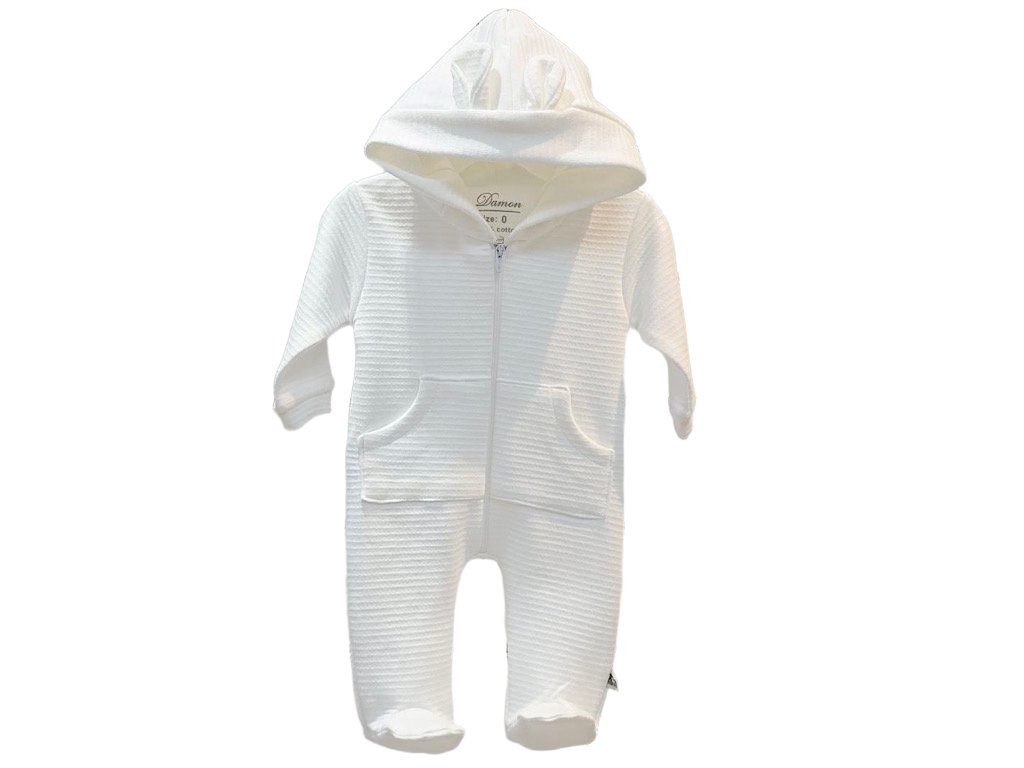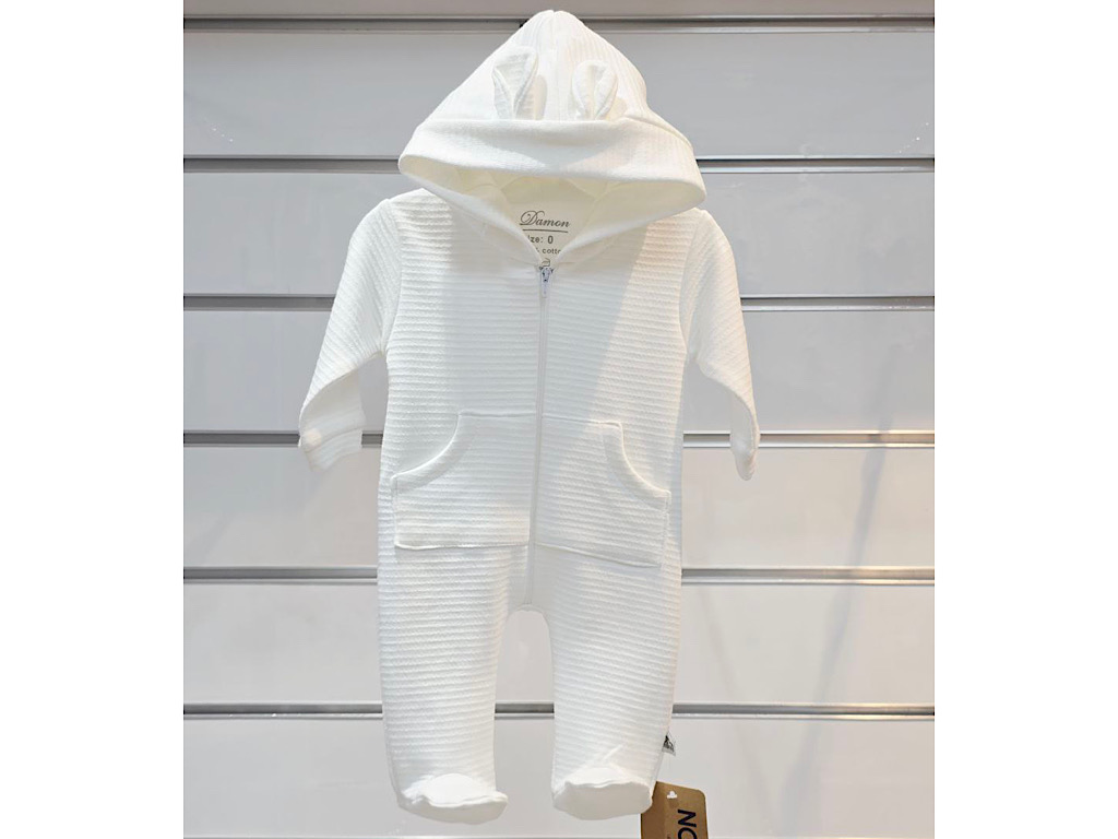 سرهمی جوراب و کلاه دار بیسکوییتی زیپ دار نوزادی رنگ شیری دامون damon