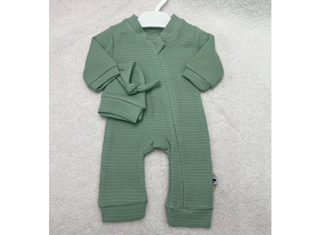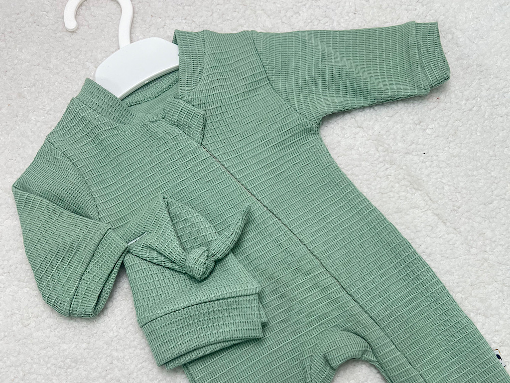 سرهمی نوزادی کلاه دار سبز رنگ کارامل caramell