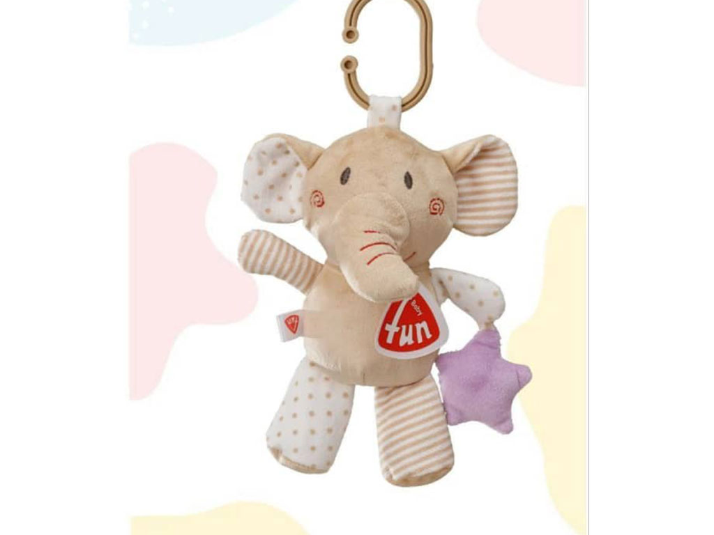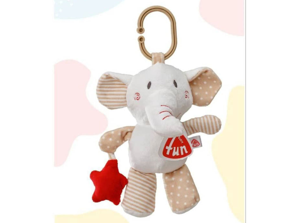 عروسک آویز تخت و کریر جغجغه ای نوزادی طرح فیل baby fun