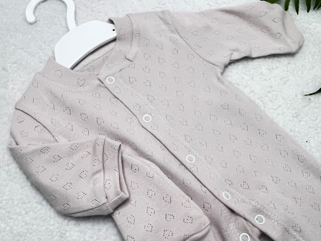 سرهمی نوزادی کلاه دار طرح قلب سوزنی رنگ کالباسی روشن کارامل caramell