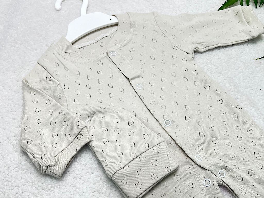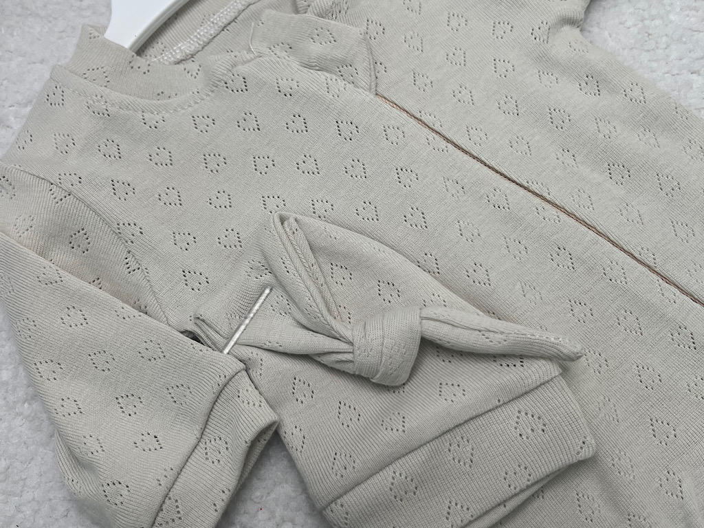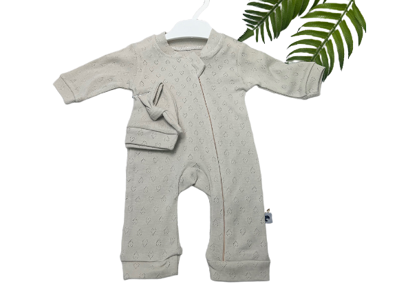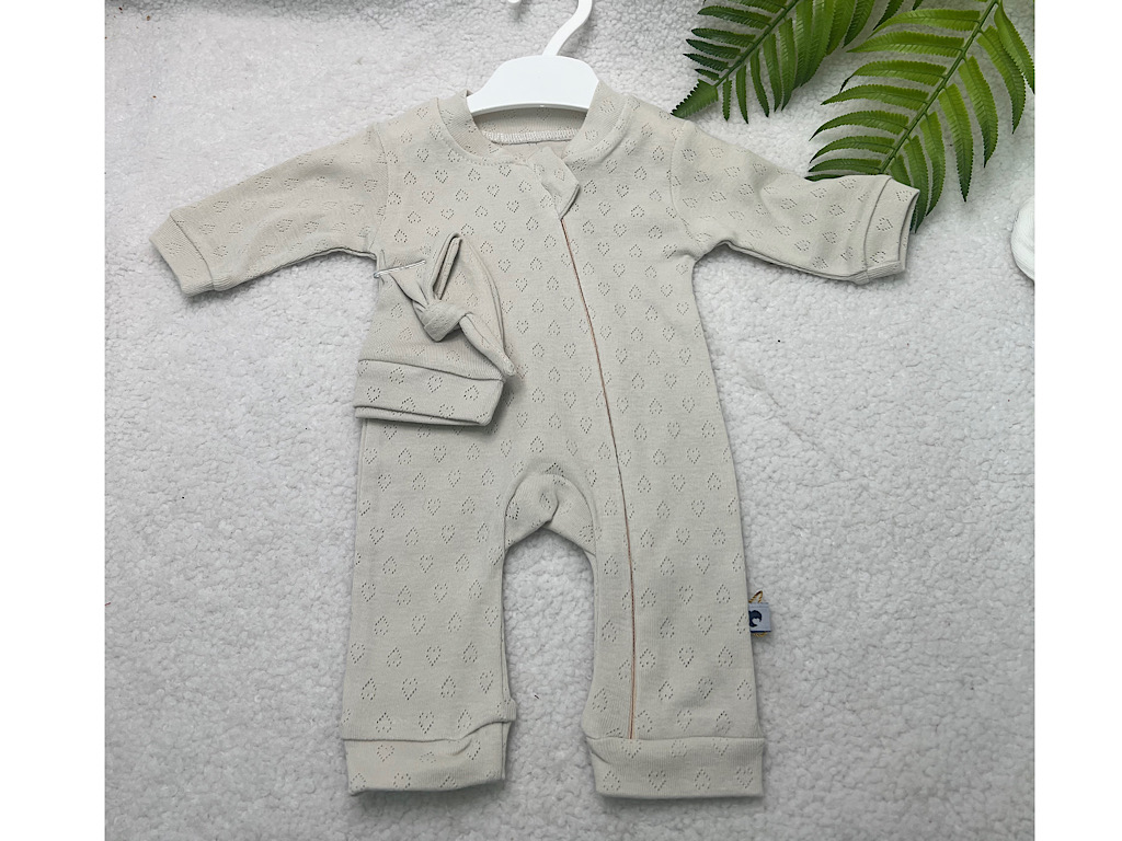 سرهمی نوزادی زیپ و کلاه دار طرح قلب سوزنی رنگ استخوانی کارامل caramell