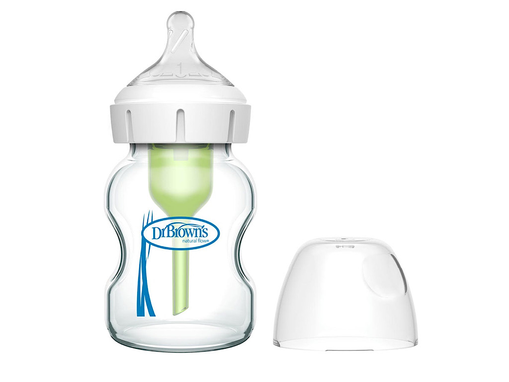 شیشه شیر دکتر براون Natural Flow Anti-Colic Options+ با سیستم دریچه داخلی بهترین عملکرد ضد کولیک را دارد، اما می توان آن را با رشد زمان شیردهی کودک از داخل شیشه شیر جدا کرد.