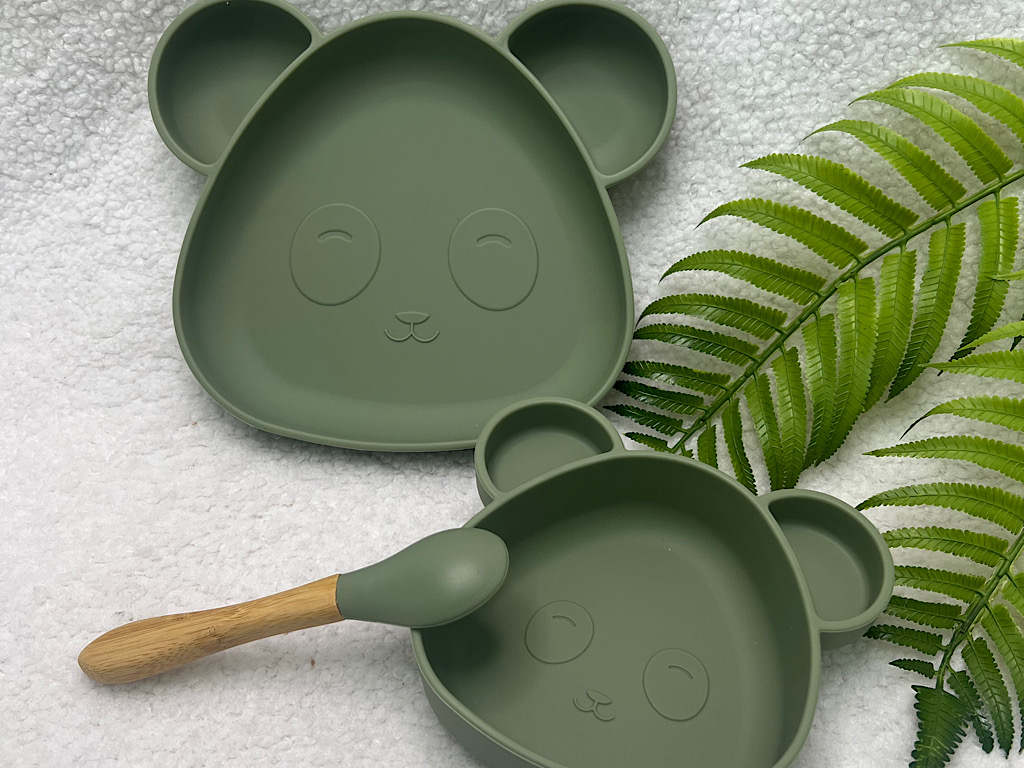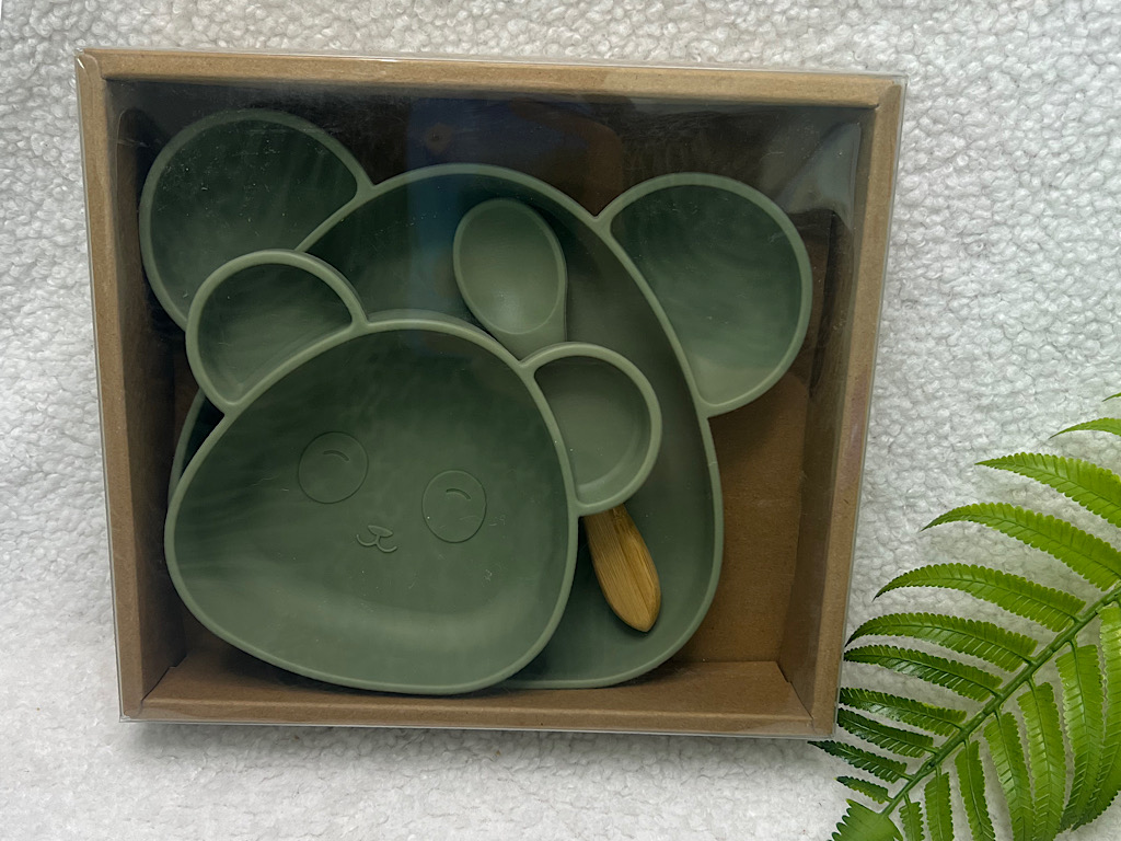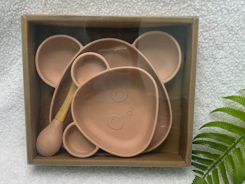 ست ظرف غذا و قاشق سیلیکونی طرح خرس ole ola