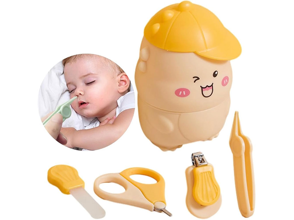 - ناخنگیر که دارای سری مناسب و بسیار تیز بوده و با دسته پلاستیکی که دارد قرار گیری مناسبی در دست والدین خواهد داشت.