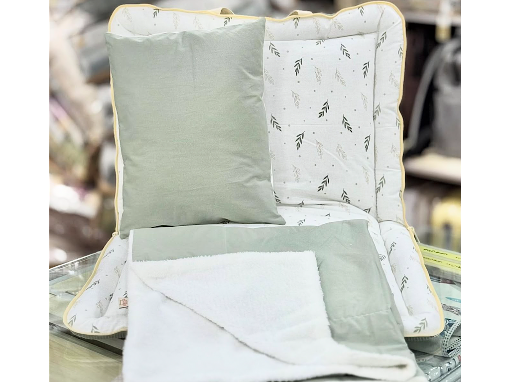 #سرویس خواب دم دستی مسافرتی نوزادی مجموعه 3 عددی تشک، لحاف و بالشت با بسته بندی کیفی طرح صلح سبز الا ELA
