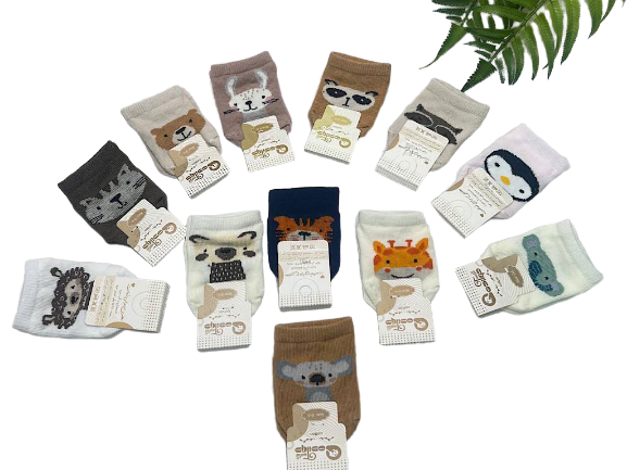 جوراب استپ دار نوزادی رنگی طرح حیوانات سایز 18-12 ماه