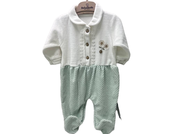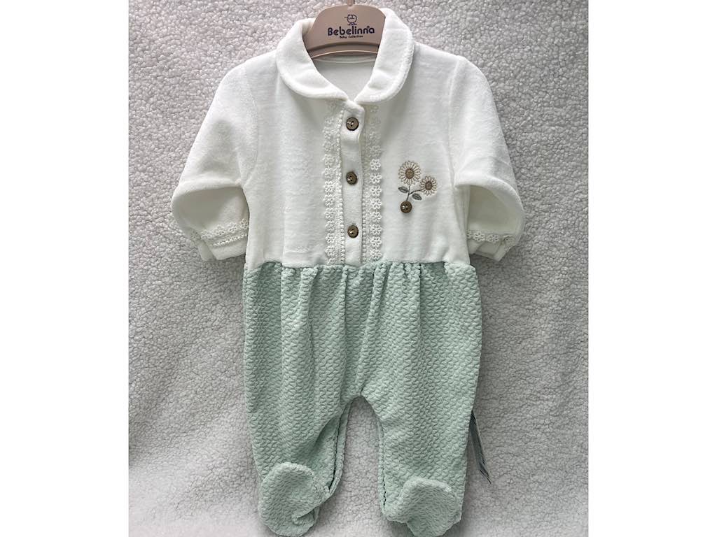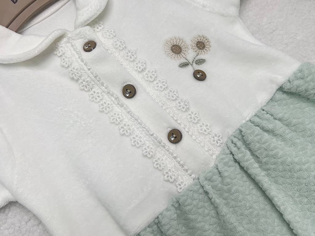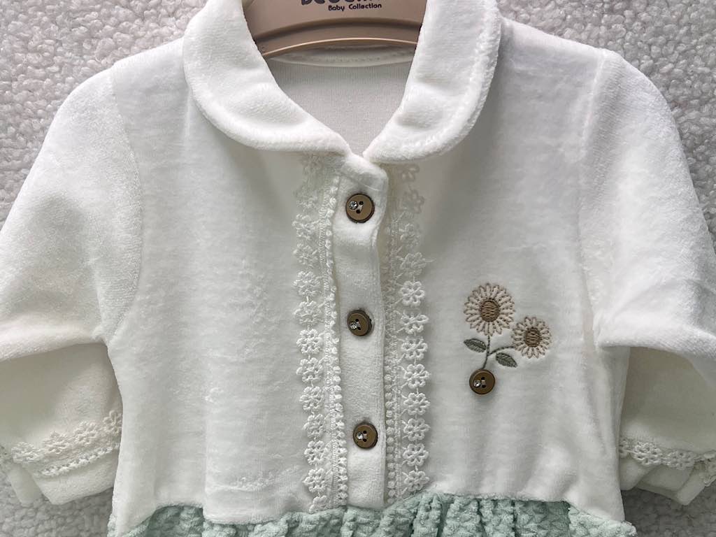 #سرهمی مخمل گلدوزی نوزادی سبز و شیری رنگ دخترانه بب لینا BEBELINNA