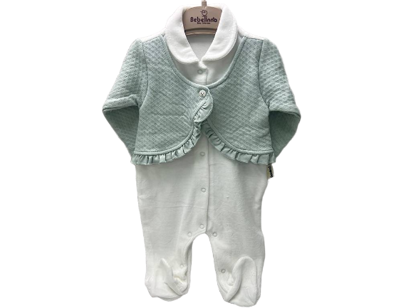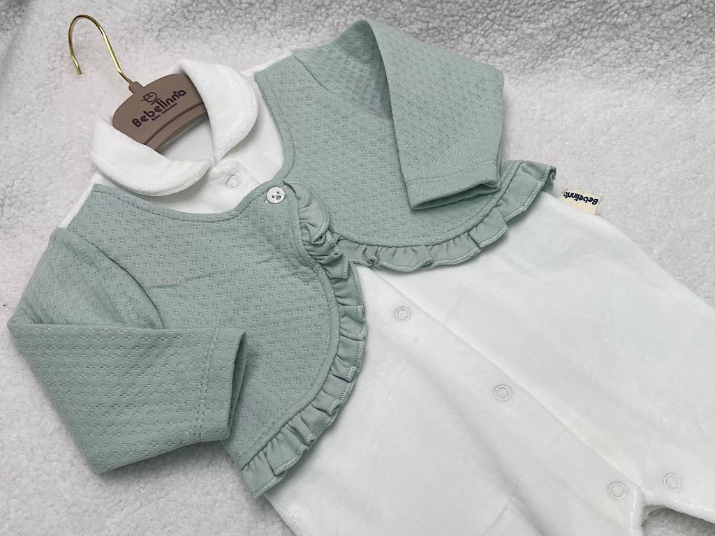 سرهمی جوراب و جلیقه دار مخمل نوزادی سبز و سفید رنگ بب لینا BEBELINNA