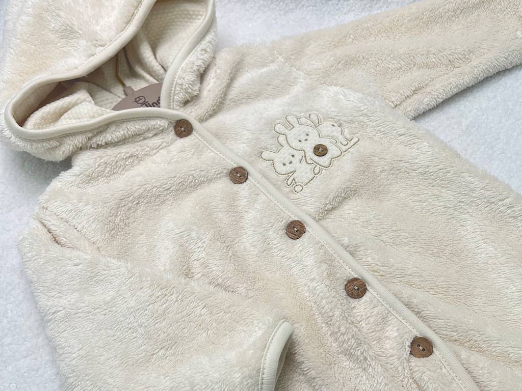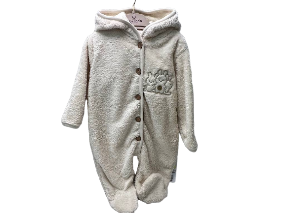 سرهمی کلاهدار و جورابدار نوزادی پولیشی طرح خرگوش کرم رنگ ب ب لینا BEBELINNA