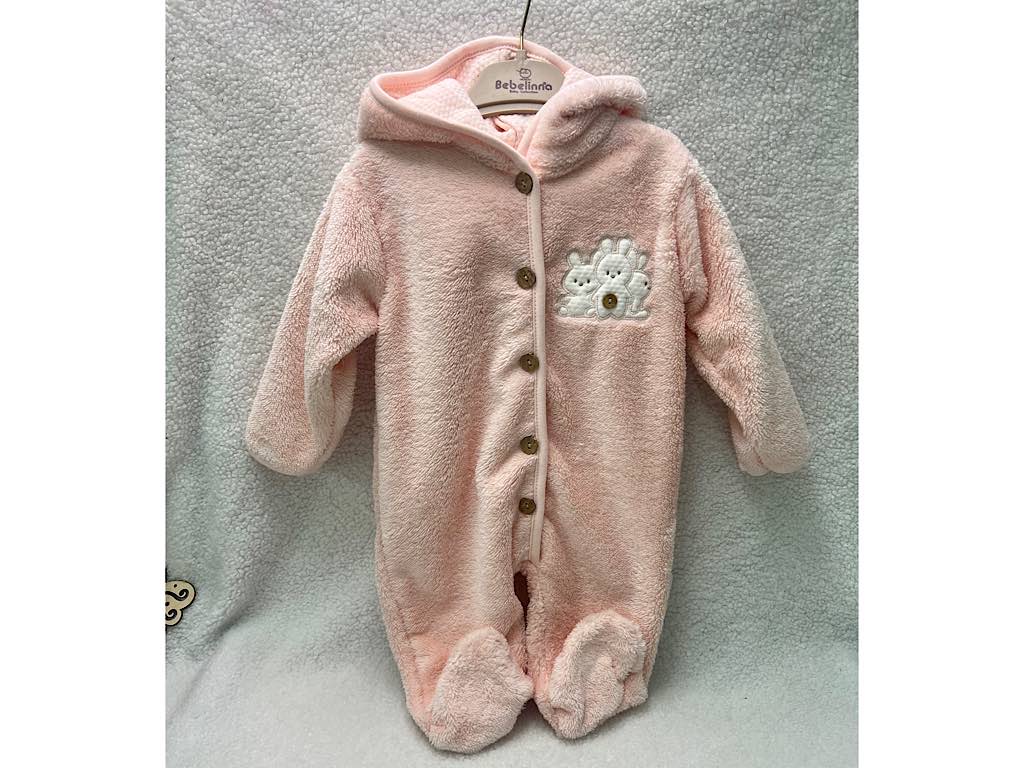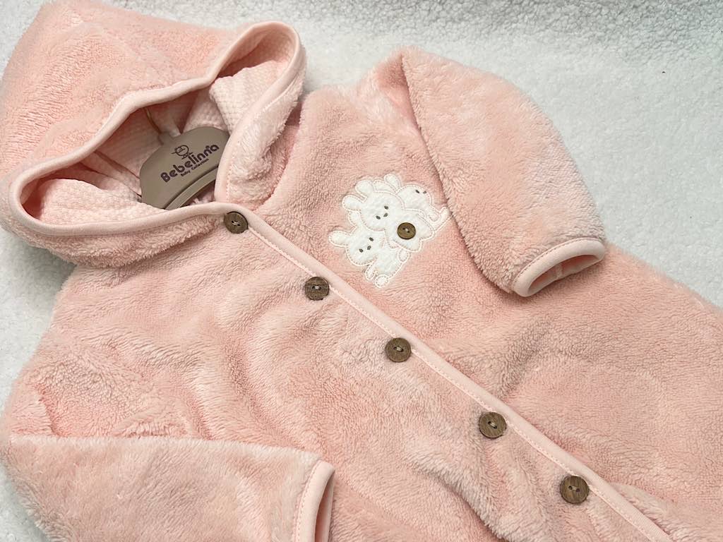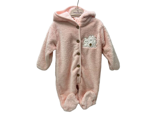 سرهمی کلاهدار و جورابدار نوزادی پولیشی طرح خرگوش صورتی رنگ ب ب لینا BEBELINNA