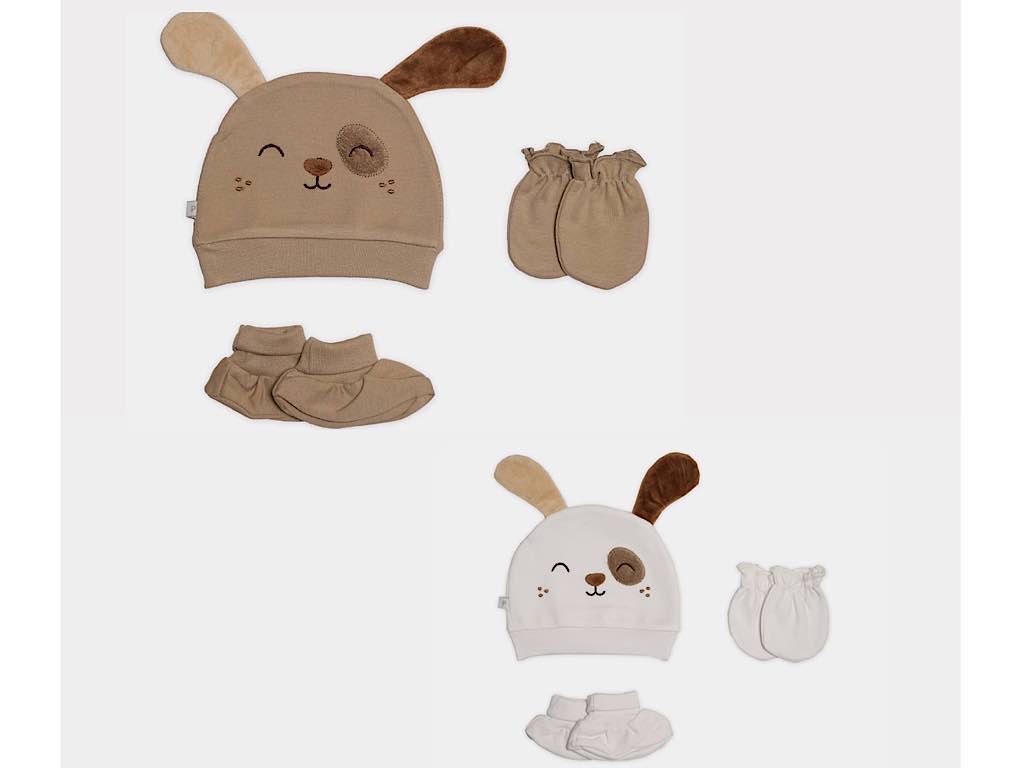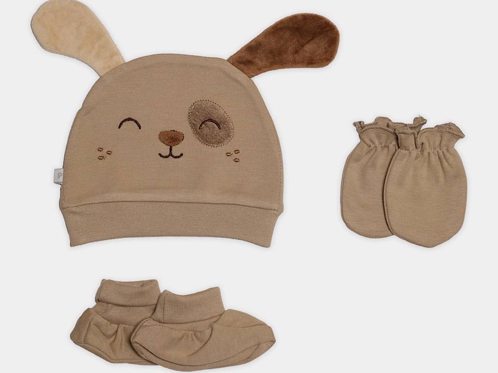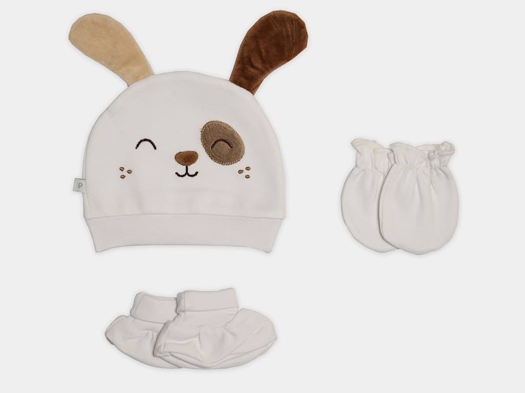 ست کلاه، دستکش و پاپوش نوزادی طرح سگ پاپو papo