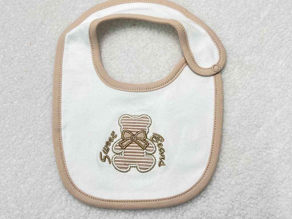 پیشبند نوزادی دخترانه رنگ شیری طرح سوئیت پاریز Pariz