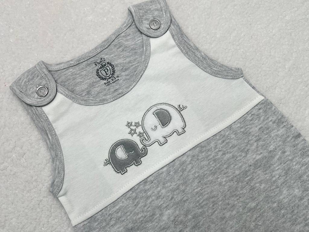 سرهمی رکابی نوزادی پسرانه خاکستری رنگ طرح الفنت پاریز Pariz