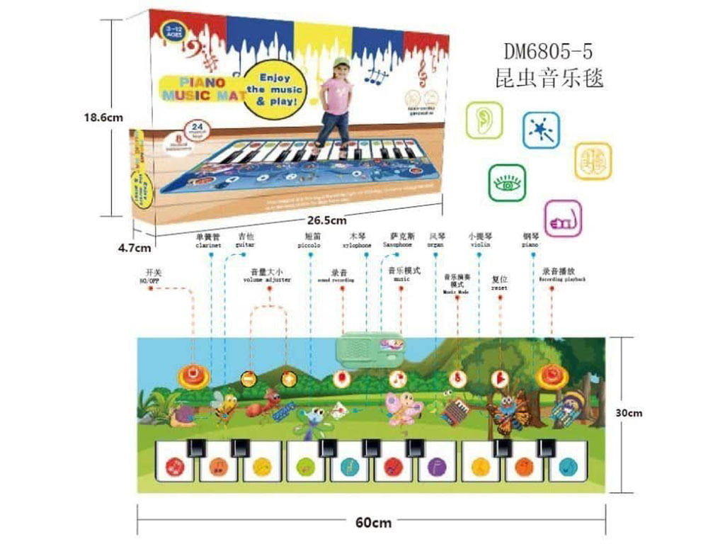 فشردن دکمه با علامت ابزار موسیقی نیز، صدای همان ابزار موسیقی را پخش می نماید، کودک می تواند به صورت خوابیده و نشسته بر روی این سفره بازی کند.