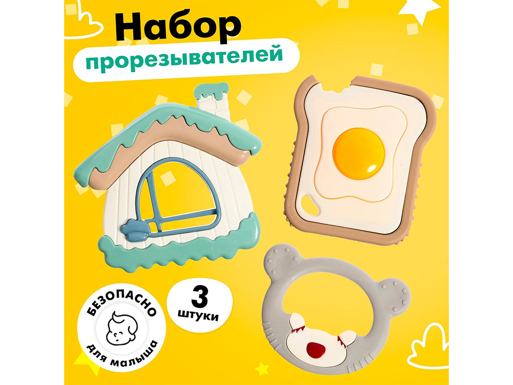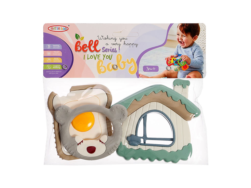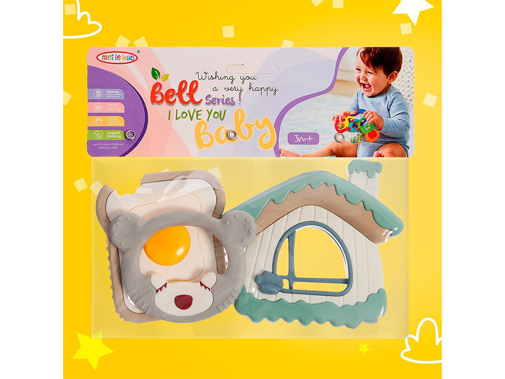 ست جغجغه و دندانگیر نوزادی 3 عددی طرح کلبه