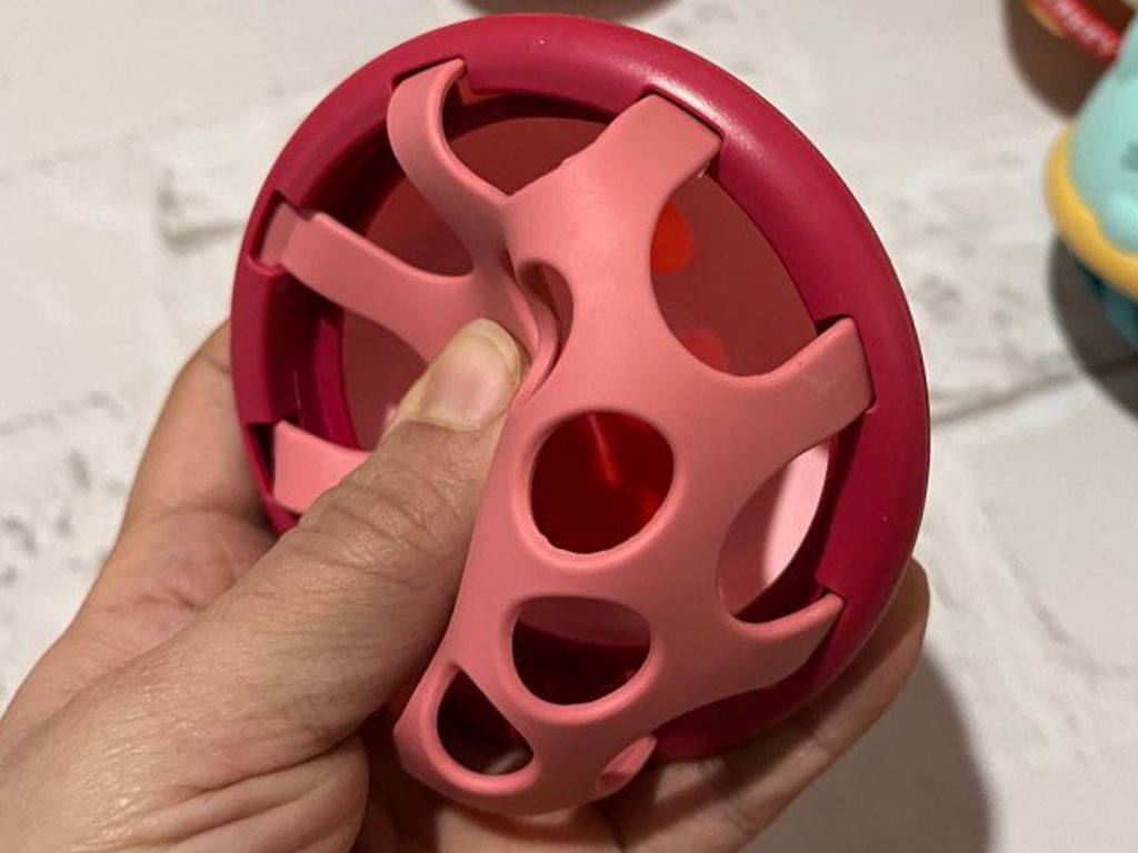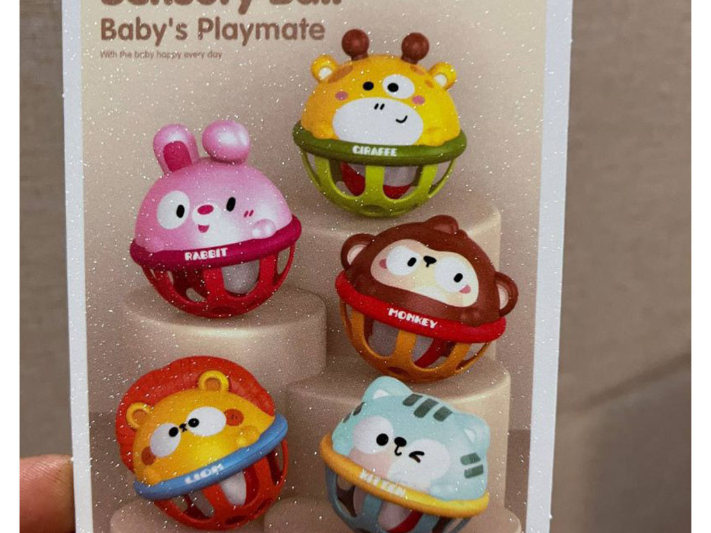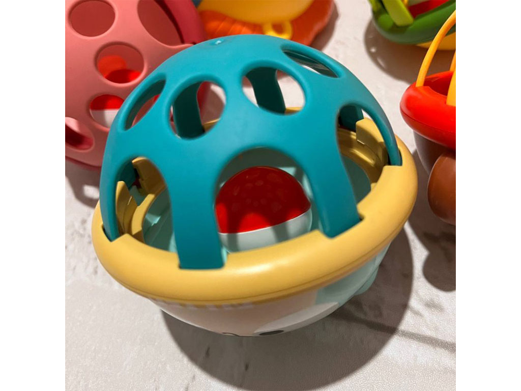 توپ نرم حیوانات جغجغه ای یک اسباب بازی با رنگ امیزی شاد با طراحی حیوانات دوست داشتنی است. پایین توپ قسمت مشبک آن نرم بوده و به راحتی کودک میتواند آنرا فشار داده تا تغیر شکل دهد به دلیل مشبک بودن کودک با انگشتان کوچکش به راحتی میتواند توپ را برداشته و پرتاب کند. این فعالیت به مهارت دست ورزی کودک کمک میکند هر چه کودکان از سن پایین بر روی هماهنگی چشم ، دست و قدرت عضلات دست کار کنند بعدا در مداد دست گرفتن مشکل کمتری خواهند داشت. داخل توپ مشبک یک توپ با صورت خندان کوچک جغجغهای است که با کمی تکان دادن صدا ایجاد میکند. دو دستگیره در دو طرف وجود دارد که مهرههای روی آن توجه کودک را جلب میکند و او از جابجاکردن آنها روی دستگیره لذت میبرد. سر توپ از جنس پلاستیک سفت می باشد.