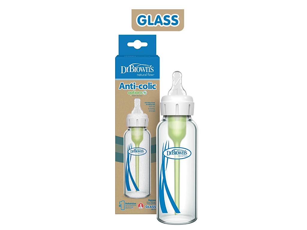 شیشه شیر دکتر براون Natural Flow Anti-Colic Options+ با سیستم دریچه داخلی بهترین عملکرد ضد کولیک را دارد، اما می توان آن را با رشد زمان شیردهی کودک از داخل شیشه شیر جدا کرد.