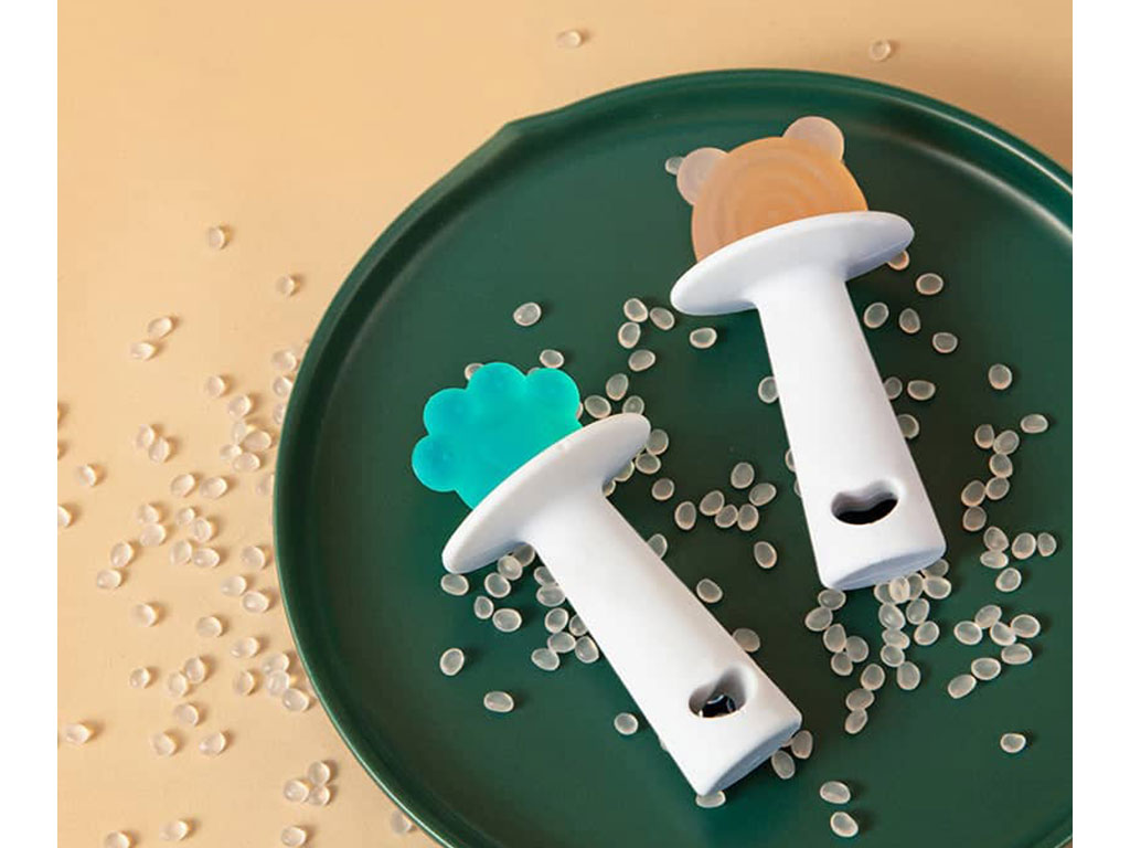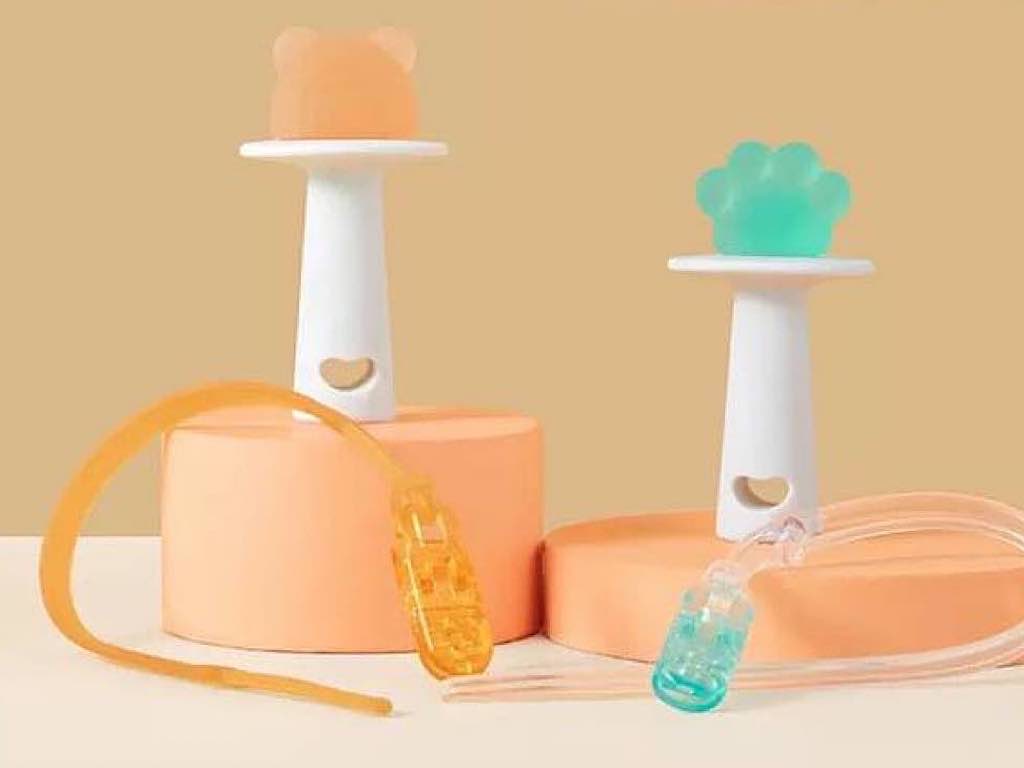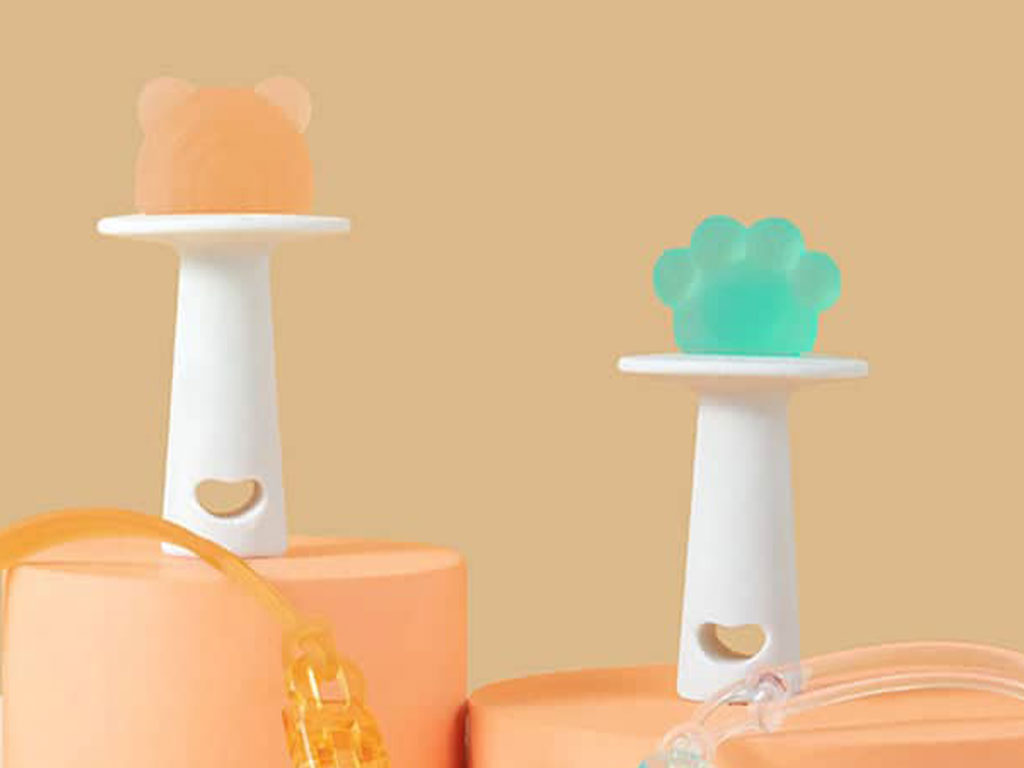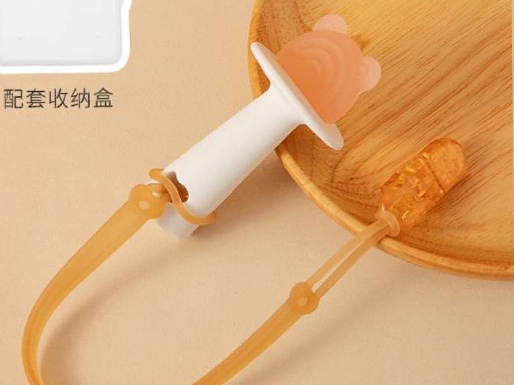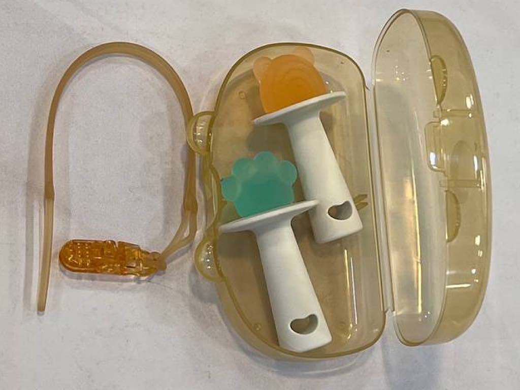 دندانگیر سیلیکونی دو عددی نوزادی قابدار به همراه بند پستانک