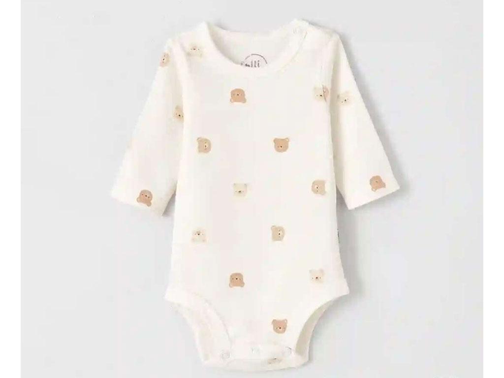 بادی آستین بلند نوزادی طرح خرس کارامل نیلی nili