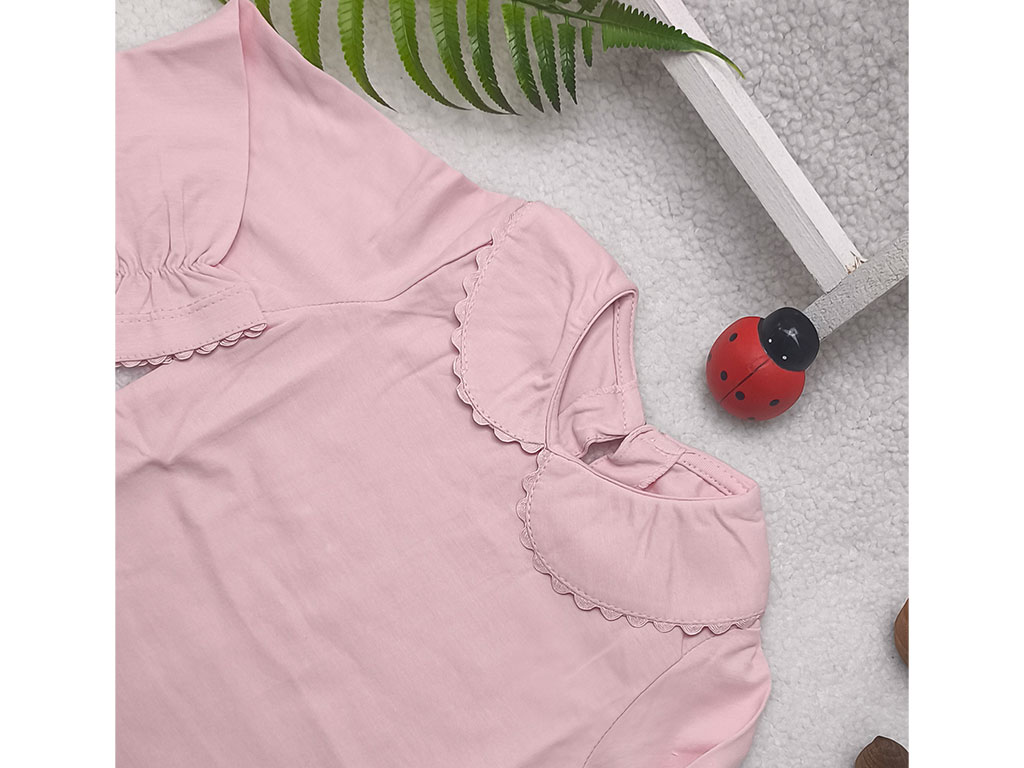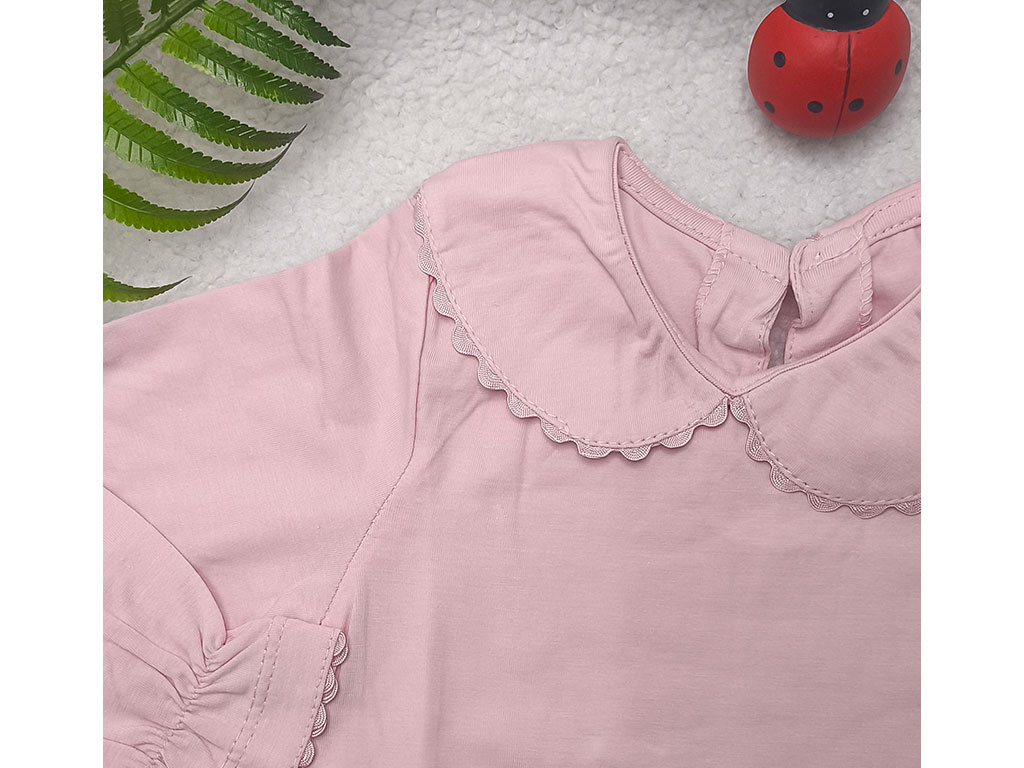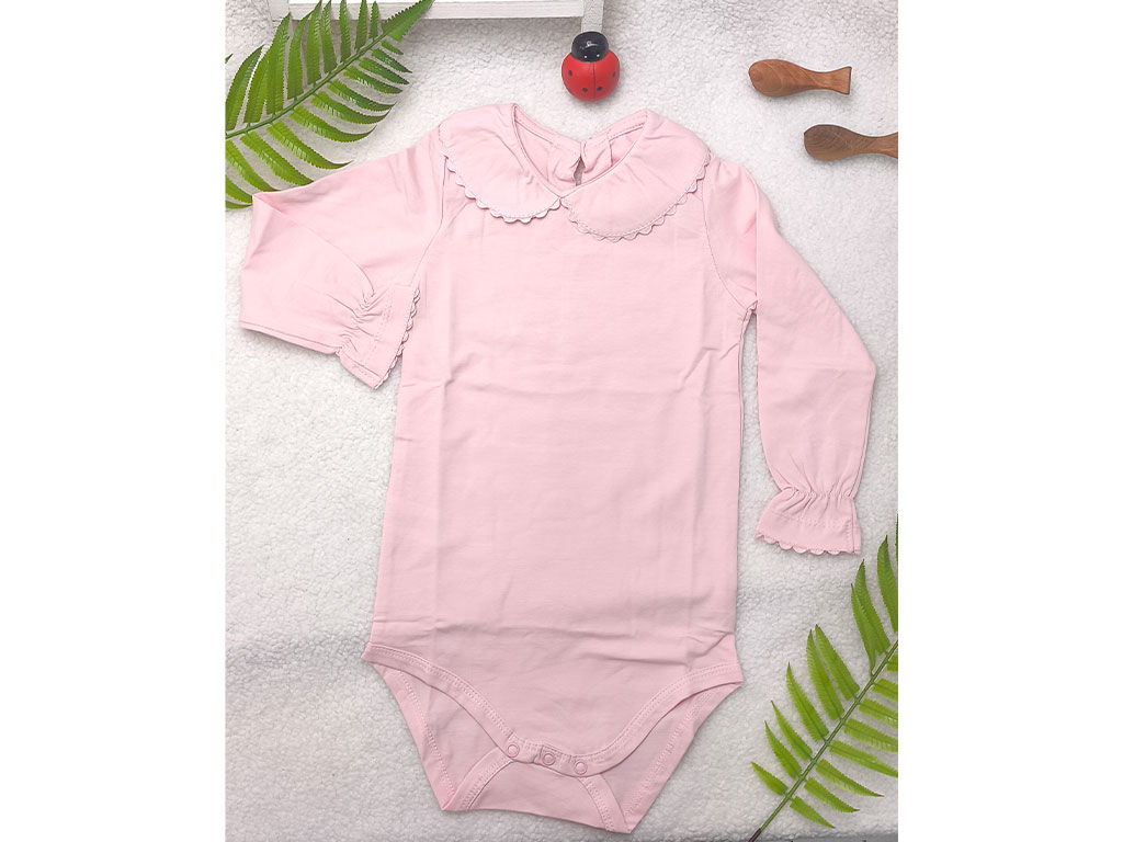 بادی آستین بلند نوزادی دخترانه رنگ صورتی یقه BB
