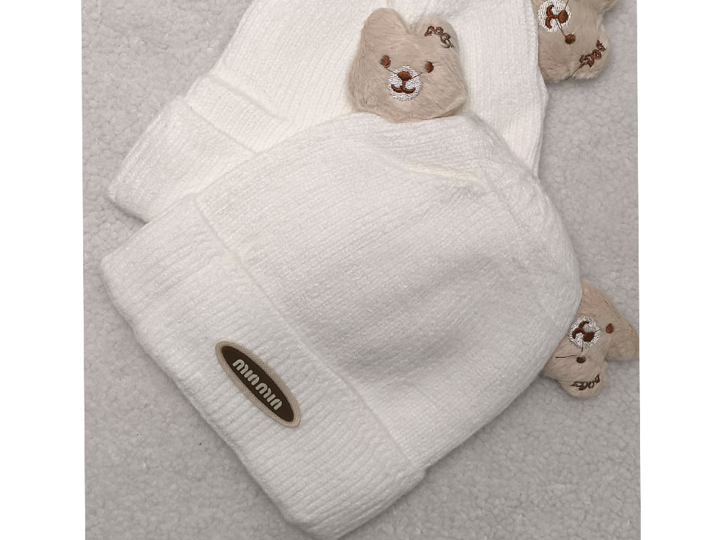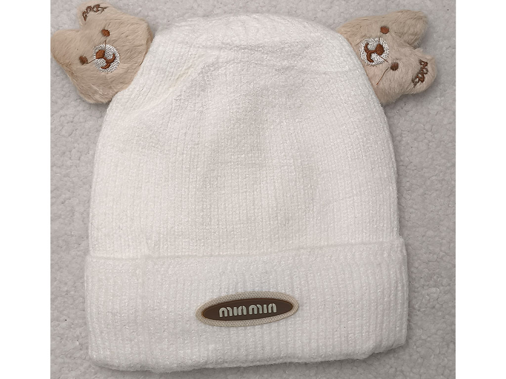 کلاه بافت لبه دوبل داخل آستر دار شاخ دار طرح خرس