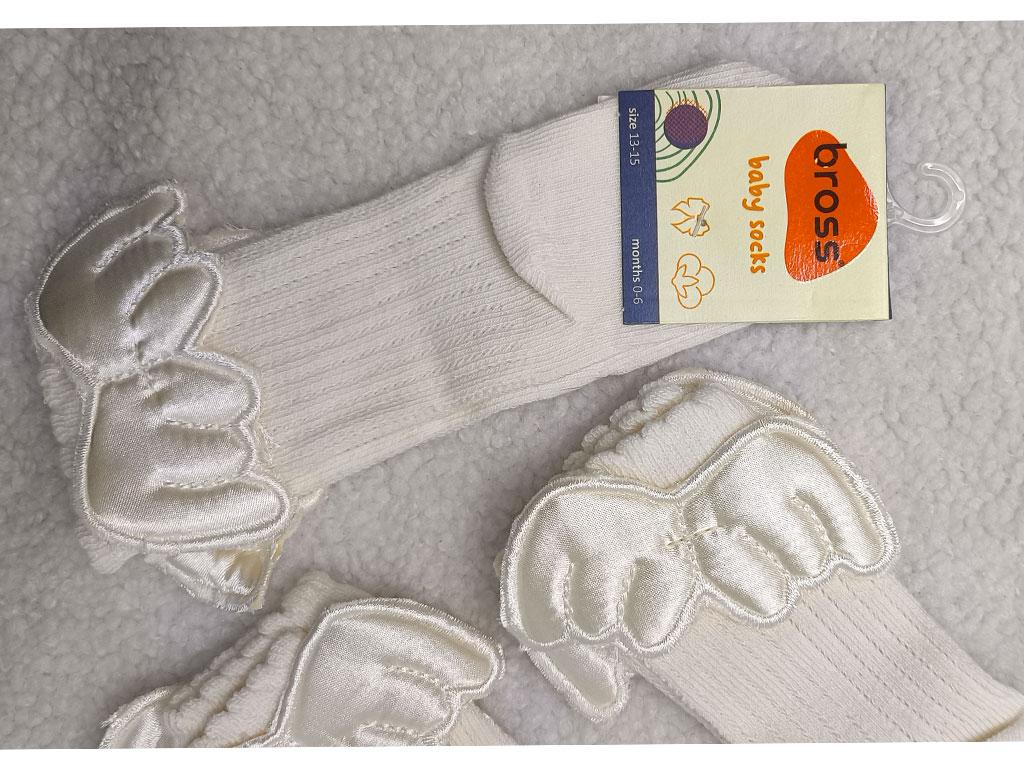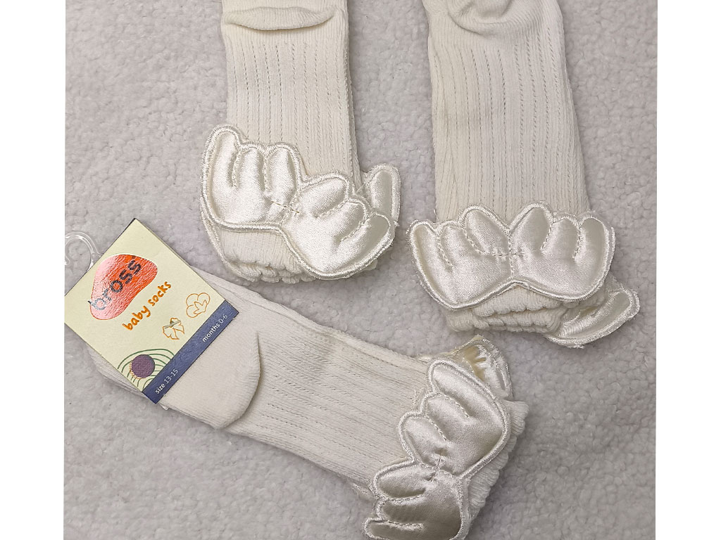 جوراب ساق بلند دخترانه بال دار شیری رنگ bross