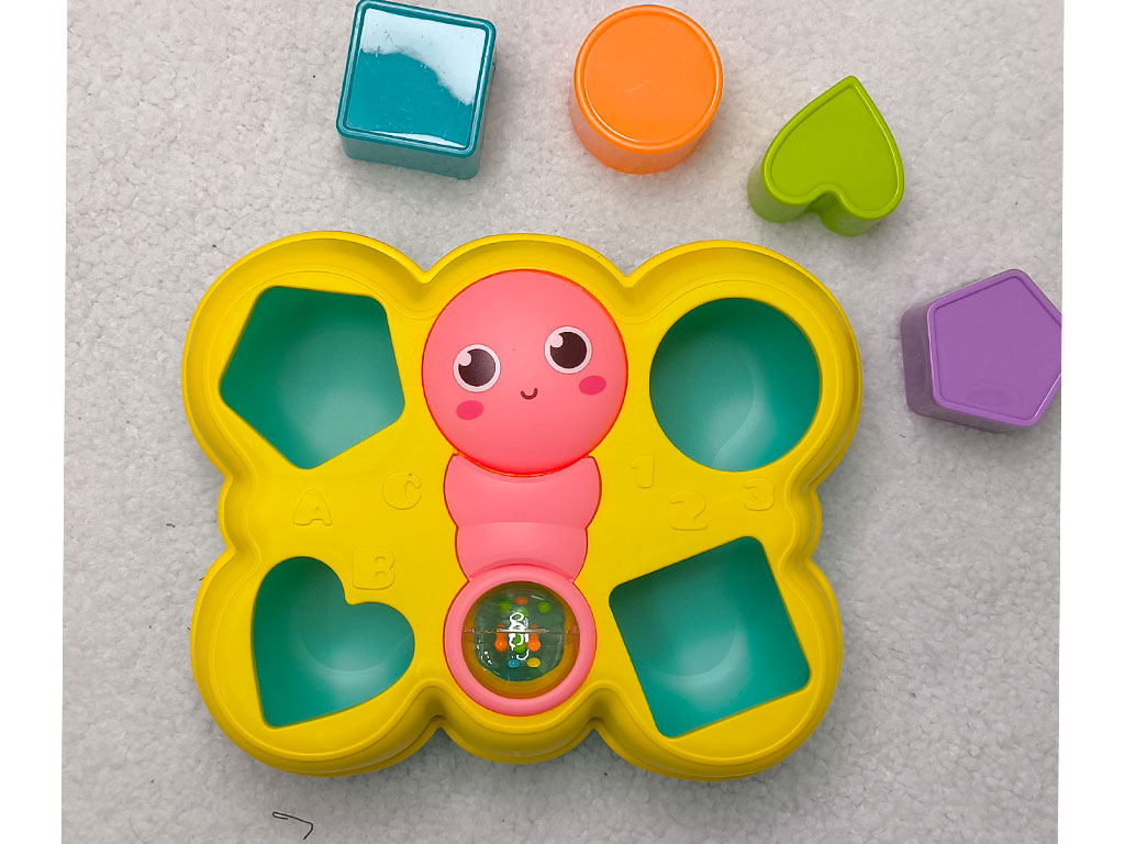 حفره ها را به کودک نشان داده و تشابه های لبه ی حفره ها و اشکال را به او یاد دهید. سپس از او بخواهید شکل همسان با حفره را پیدا کرده و به داخل بیاندازد.