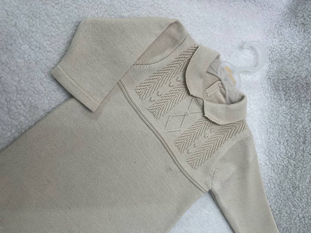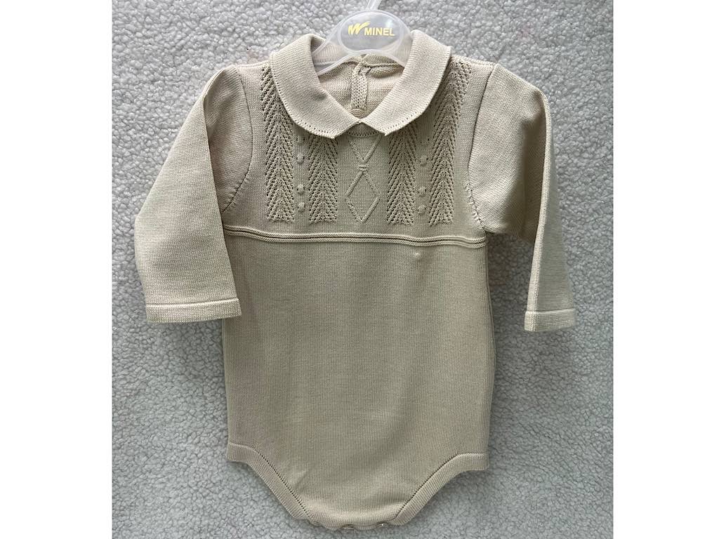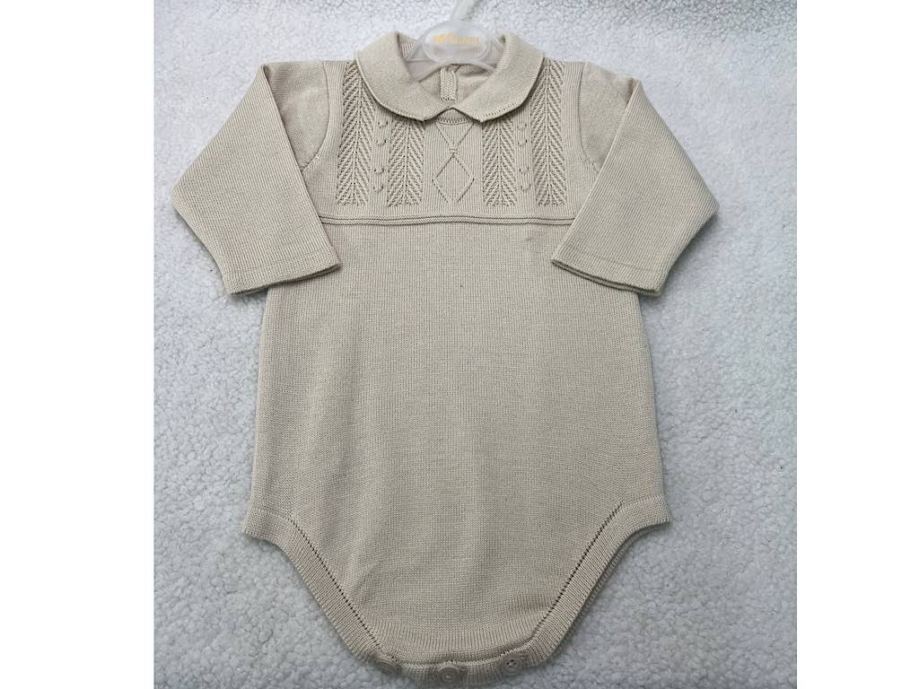 بادی بافت آستین بلند نوزادی دخترانه کرم رنگ طرح شکوفه