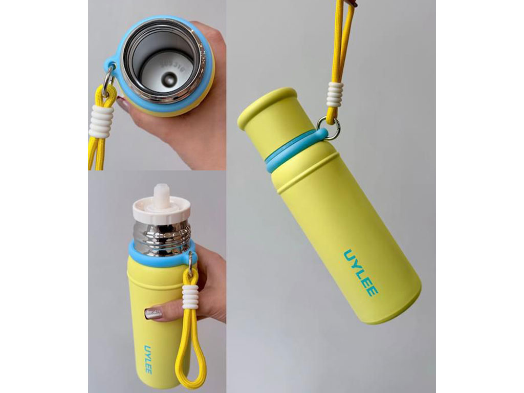 فلاسک استیل حجم 500 میلی لیتر دارای نی و بند