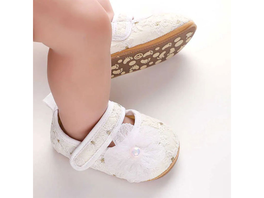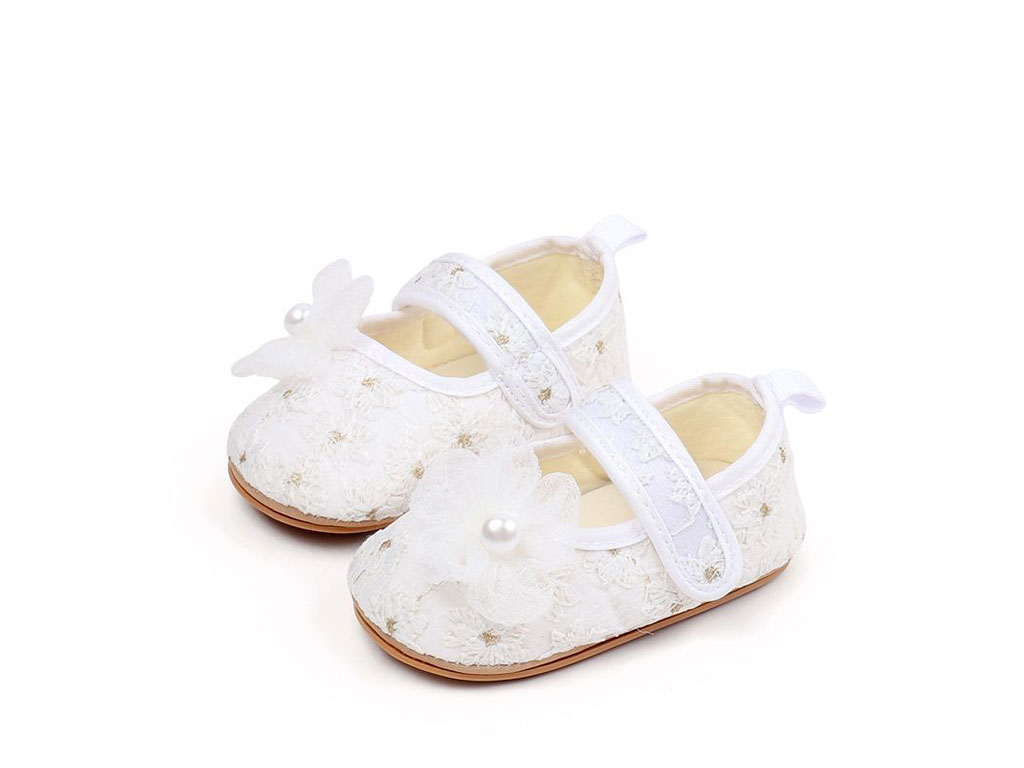 پاپوش استپ دار نوزادی رنگ سفید شیری خامه دوزی طرح گل