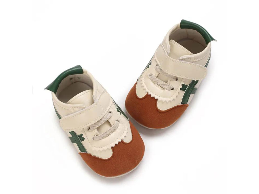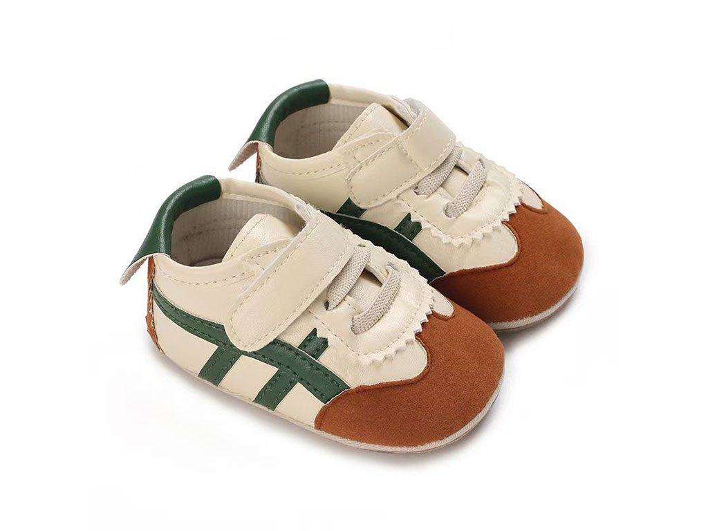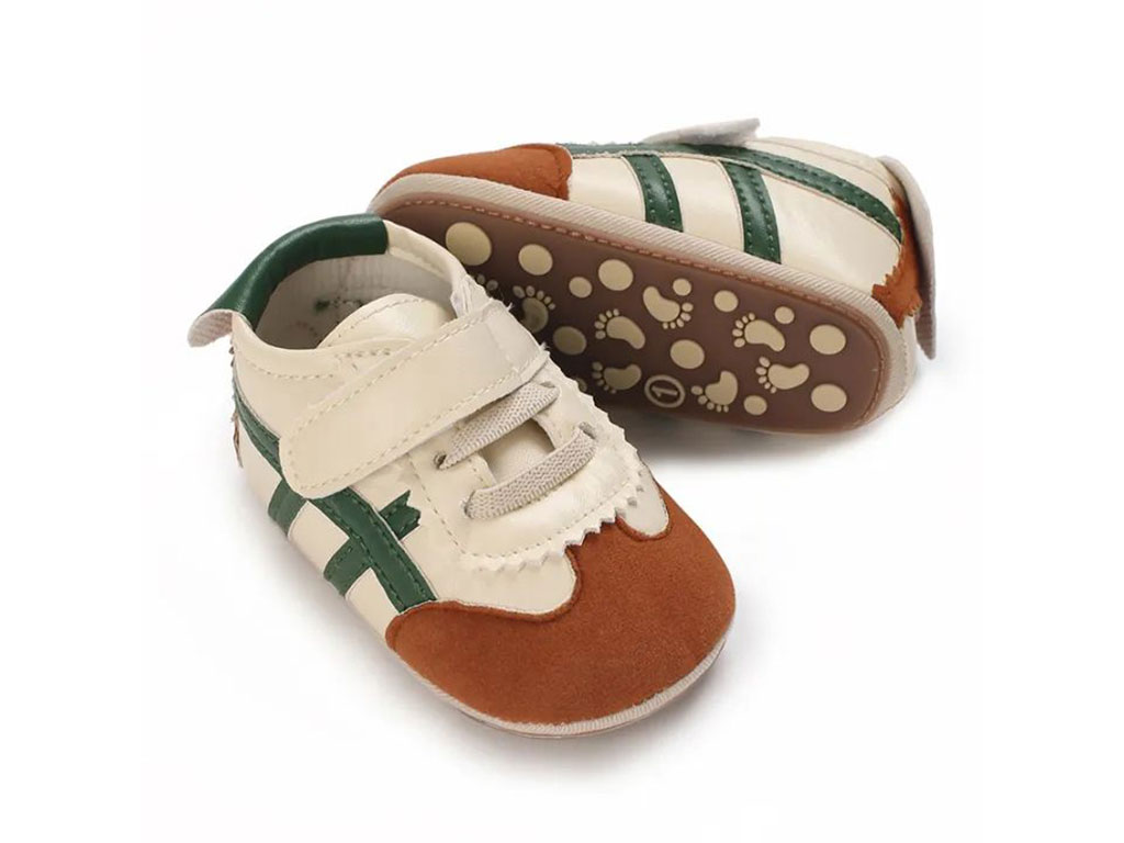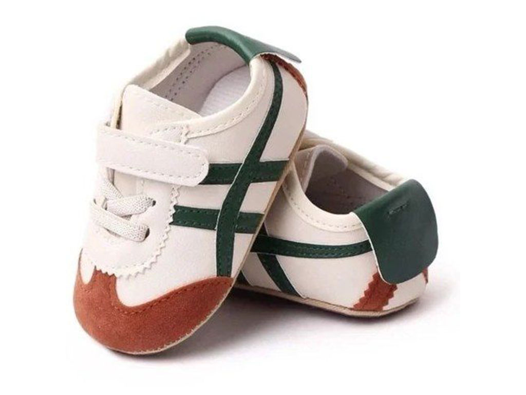 پاپوش استپ دار نوزادی رنگ شیری طرح خط دار سبز