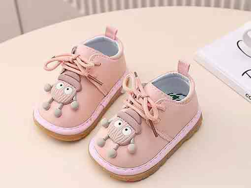 کفش سوتی دخترانه نوزادی رنگ صورتی طرح آدمک