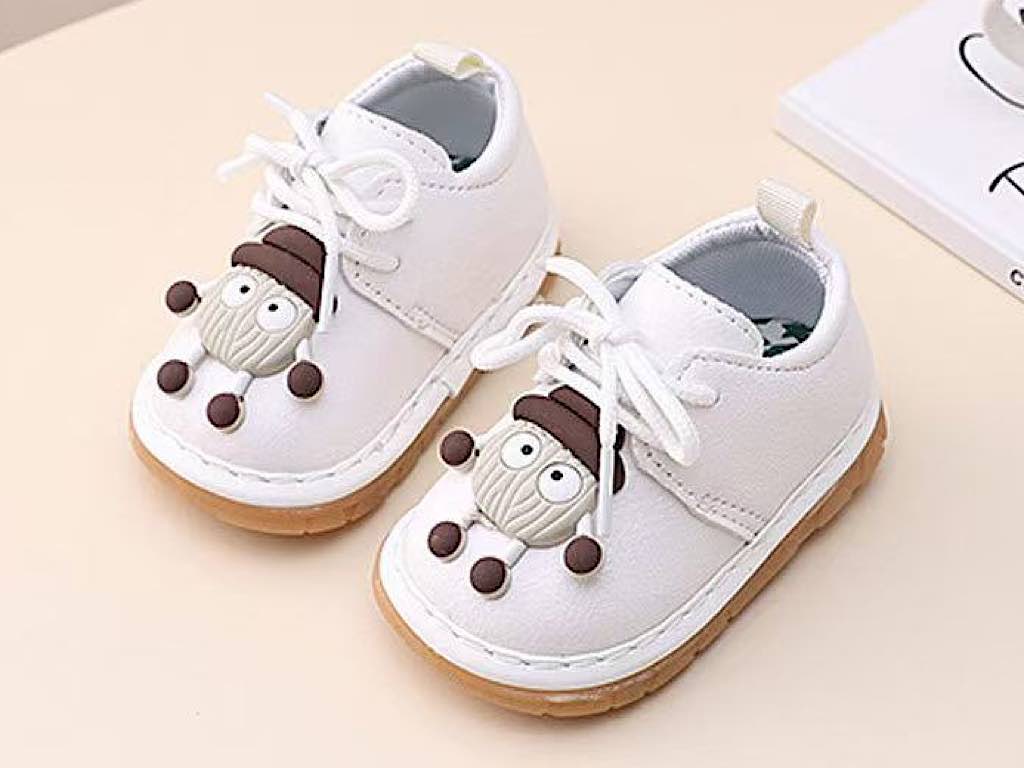 کفش سوتی و جغجغه ای نوزادی شیری رنگ مدل آدمک
