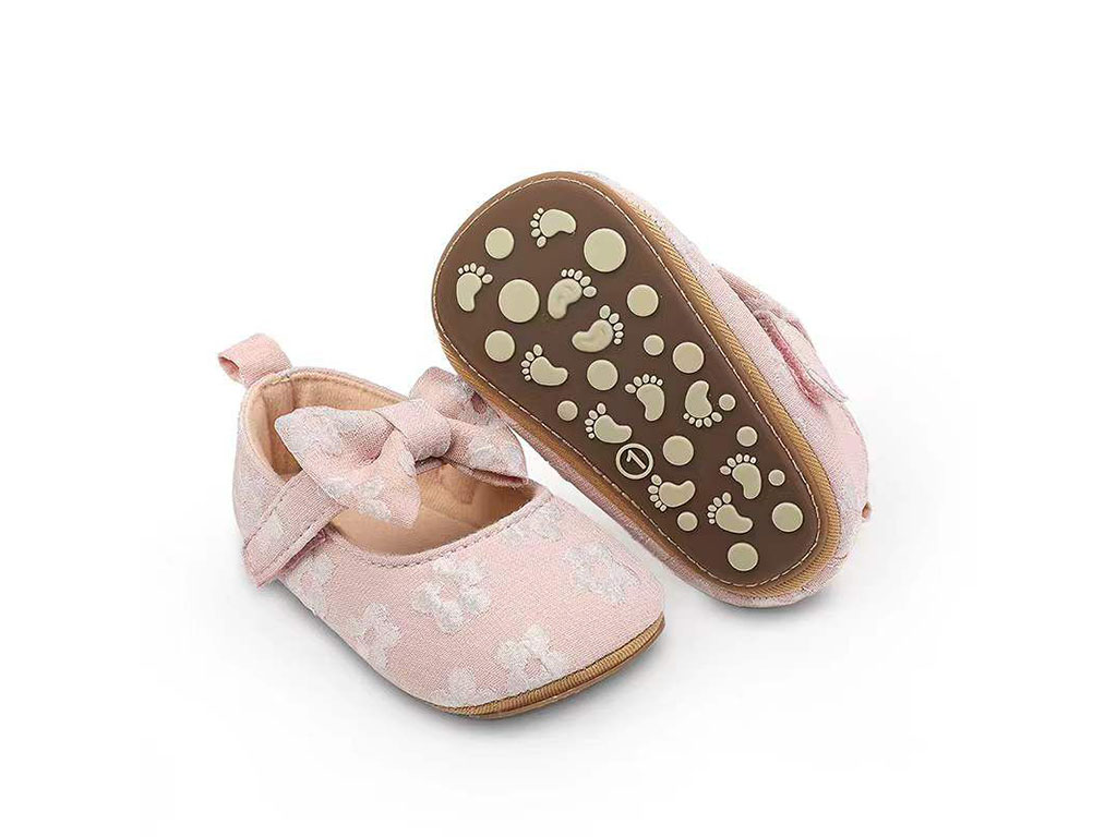 پاپوش استپ دار نوزادی رنگ صورتی طرح گل های سفید