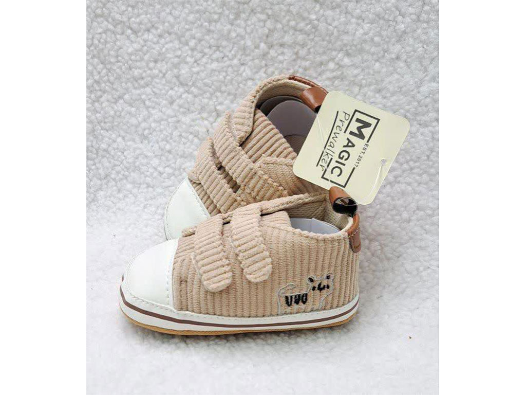 پاپوش استپ دار نوزادی مخمل کبریتی طرح ببر رنگ نسکافه ای