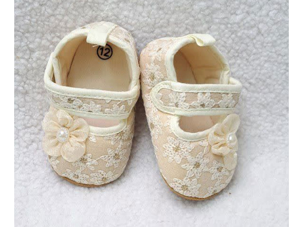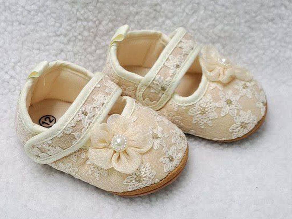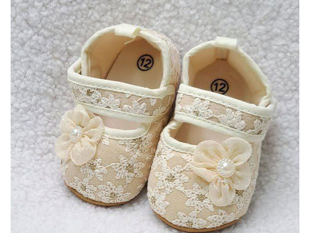 پاپوش استپ دار نوزادی رنگ کرم طرح گل برجسته