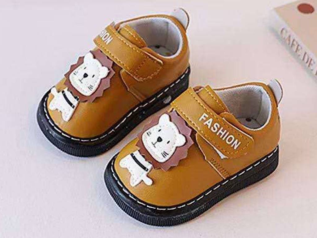 کفش سوتی و جغجغه ای نوزادی قهوه ای عسلی رنگ مدل شیر