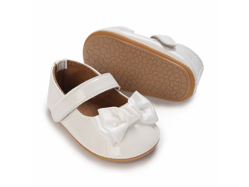پاپوش سفید رنگ استپ دار نوزادی دخترانه طرح پاپیون