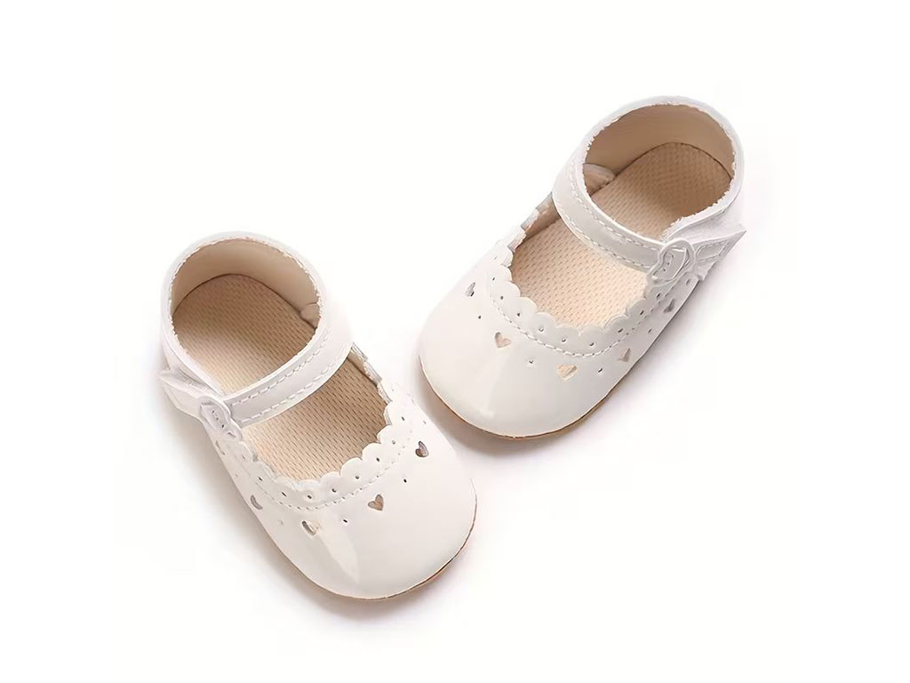 پاپوش سفید رنگ استپ دار نوزادی دخترانه طرح لبه قلب دار