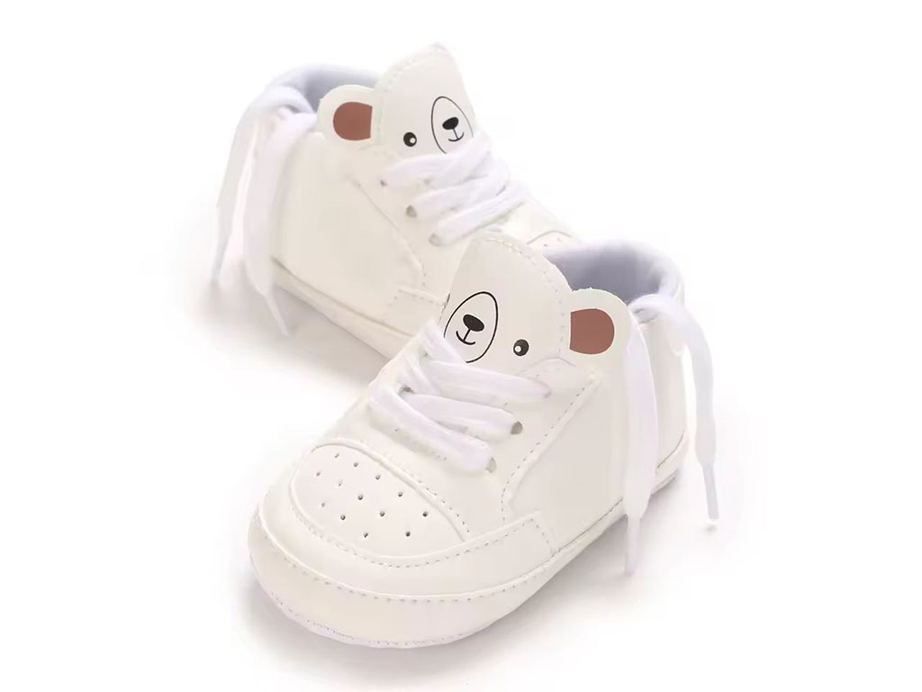 پاپوش استپ دار نوزادی سفید رنگ طرح خرس