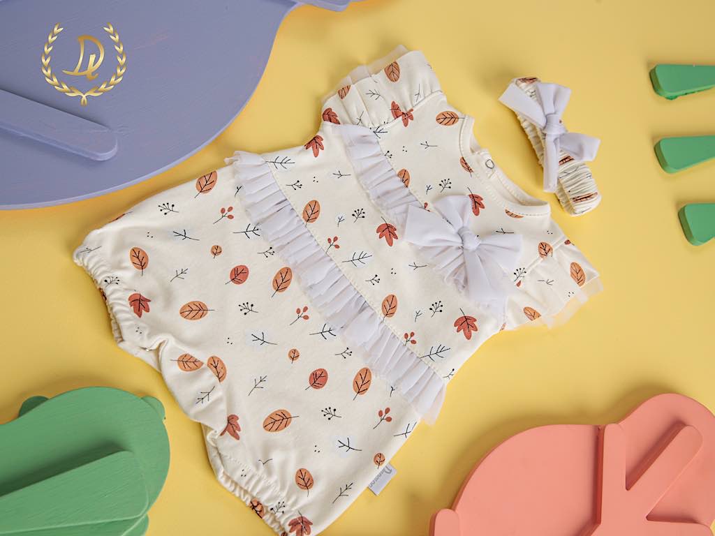 رامپر نوزادی گلدوزی شده طرح برگ دانالو