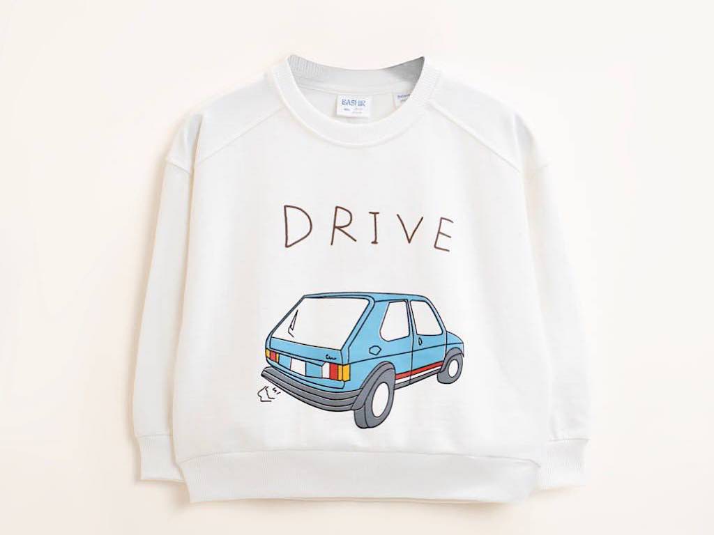 بلوز آستین بلند دورس رنگ سفید طرح ماشین بشیر Bashir